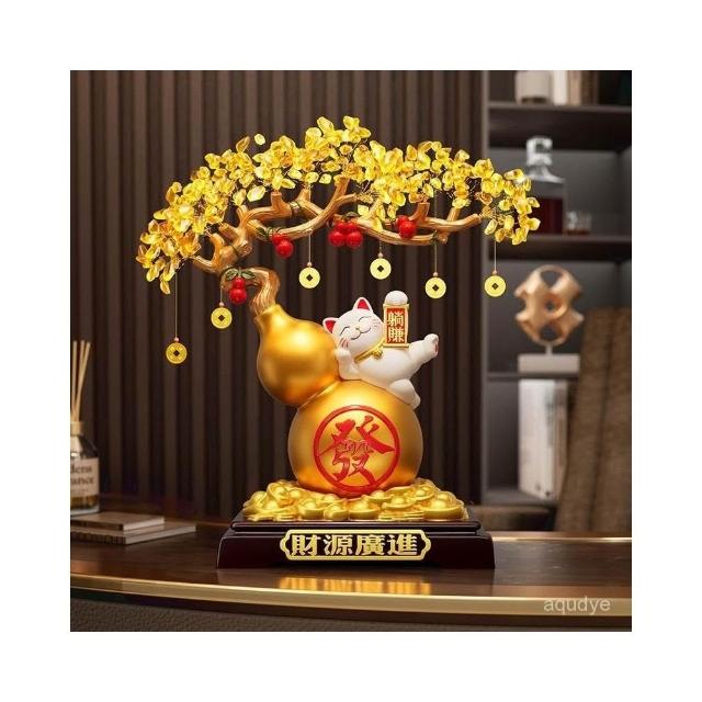黃水晶 發財樹 躺賺招財貓 葫蘆擺飾 招財進寶 客廳 玄關擺飾 電視櫃裝飾擺件 辦公室裝飾品 開幕送禮 入厝禮物