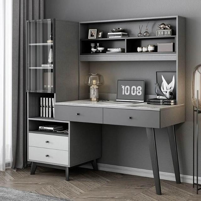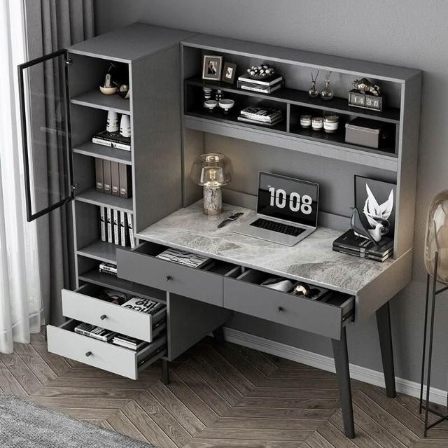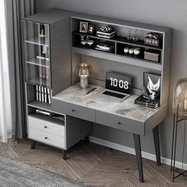 輕奢書桌電腦桌傢用小戶型意式巖闆書桌伸縮電競桌學習桌2023新款