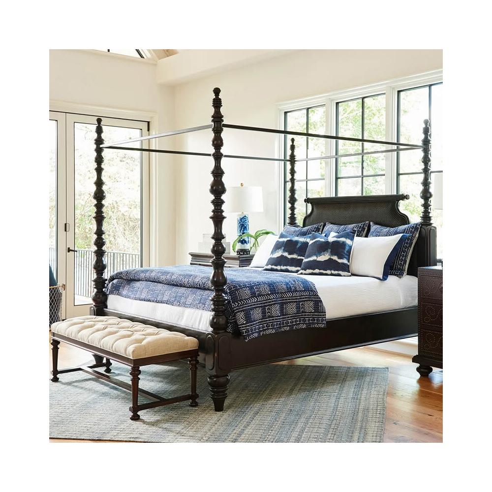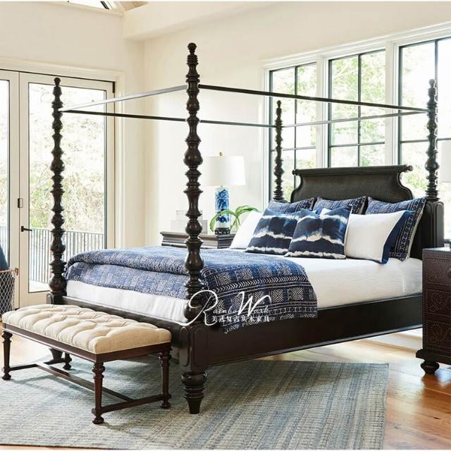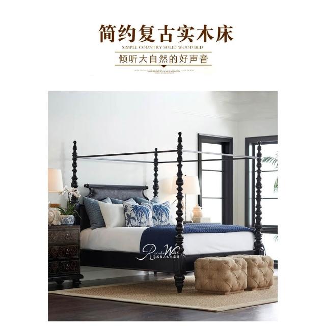美式複古實木床法式雙人床主臥蚊帳架羅馬四柱床歐式別墅民宿家具