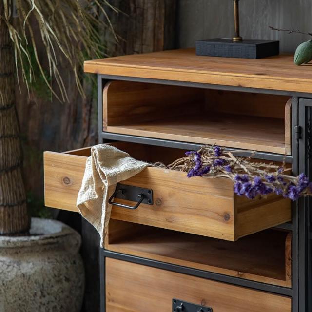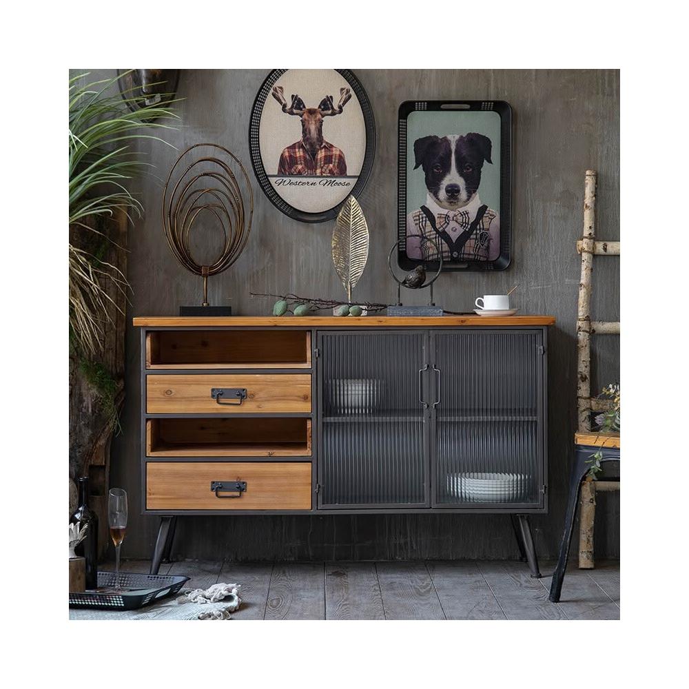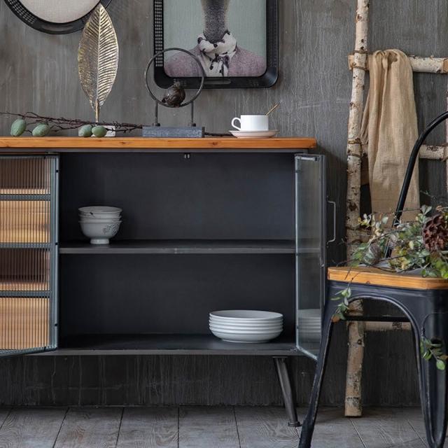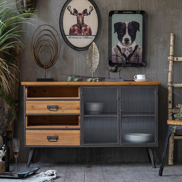 美式鄉村餐邊櫃工業風鐵藝餐廳客廳玄關櫃靠墻複古櫃子收納儲物櫃