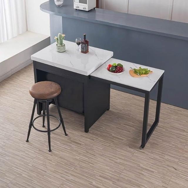 可移動餐邊櫃廚房中島臺伸縮料理臺餐桌一體家用開放巖闆吧臺定製