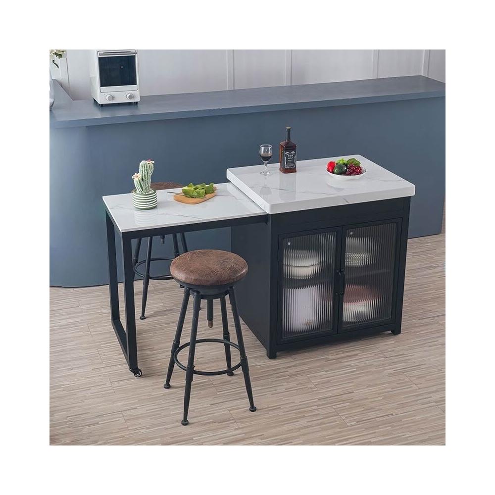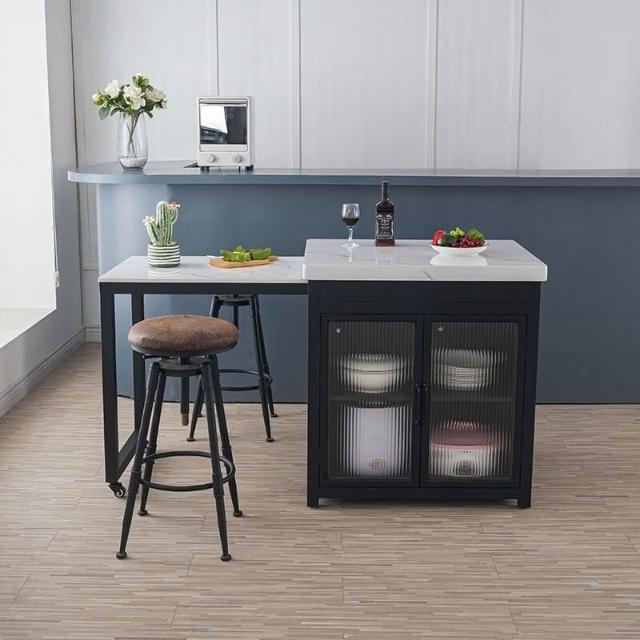 可移動餐邊櫃廚房中島臺伸縮料理臺餐桌一體家用開放巖闆吧臺定製