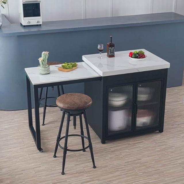 可移動餐邊櫃廚房中島臺伸縮料理臺餐桌一體家用開放巖闆吧臺定製