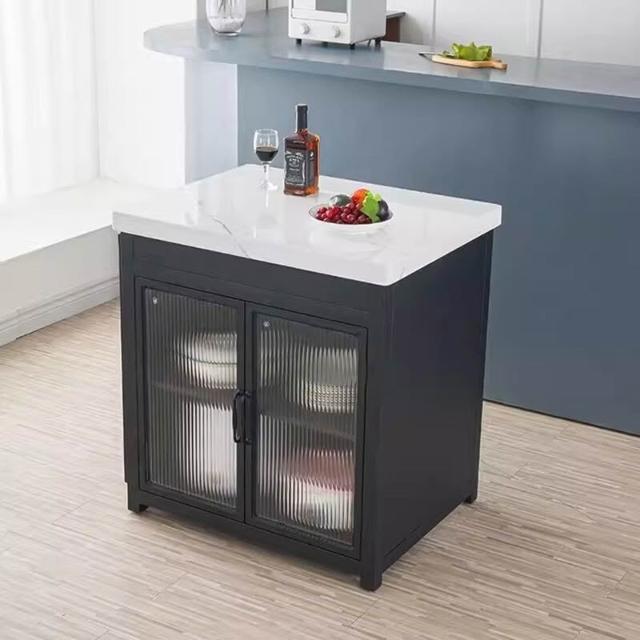 可移動餐邊櫃廚房中島臺伸縮料理臺餐桌一體家用開放巖闆吧臺定製