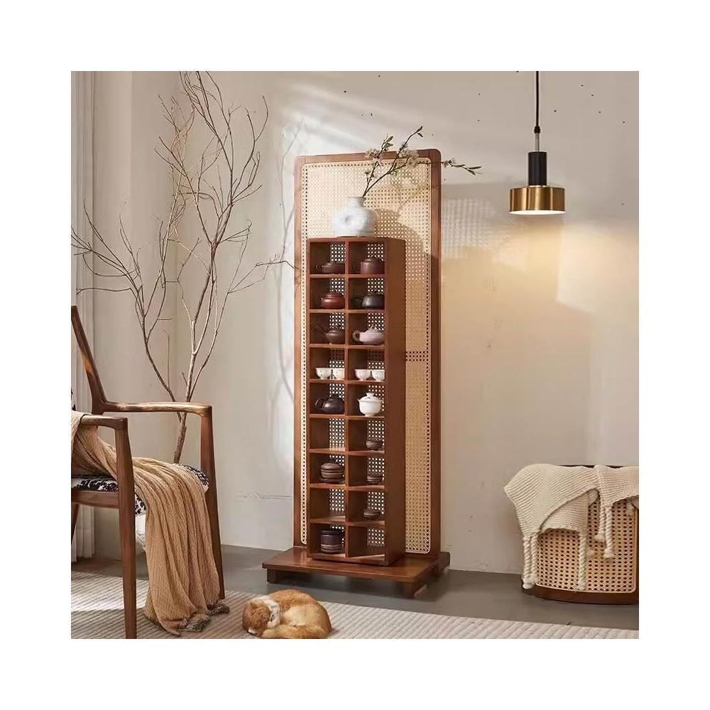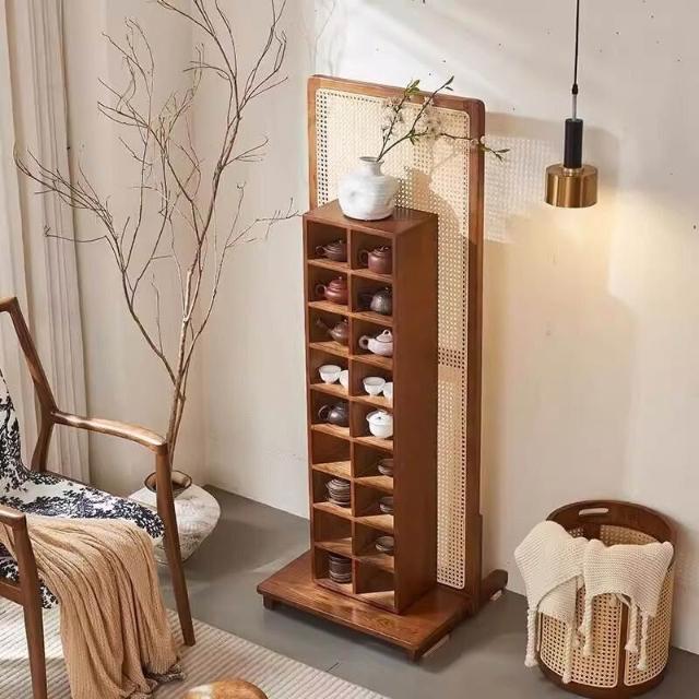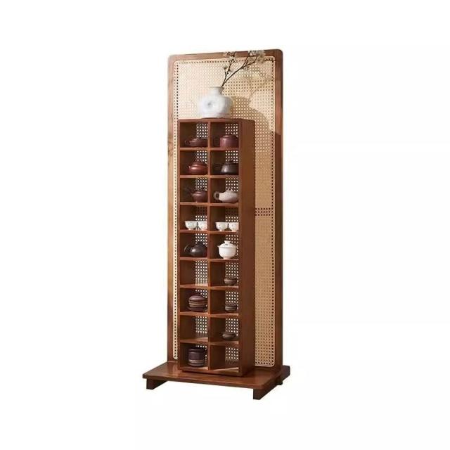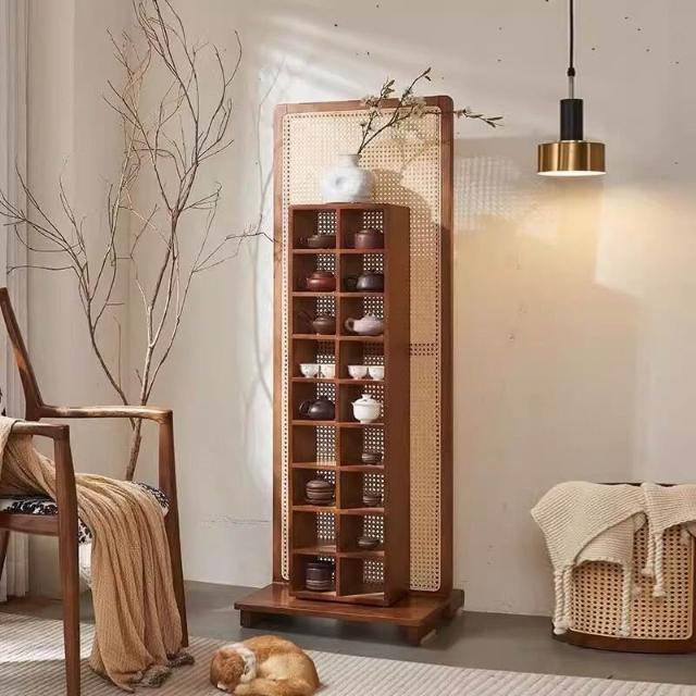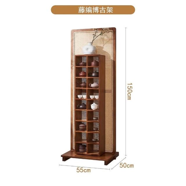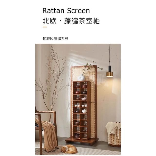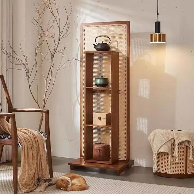 侘寂風茶室藤家具藤編新中式實木多寶閣屏風隔斷展示架藤編收納櫃