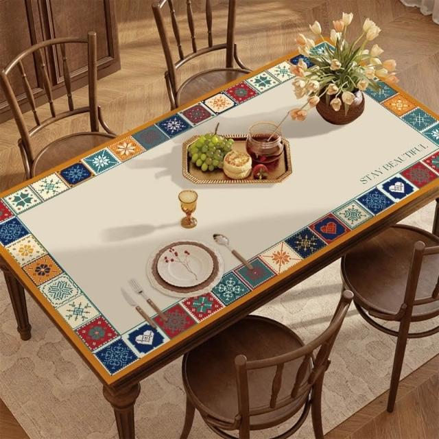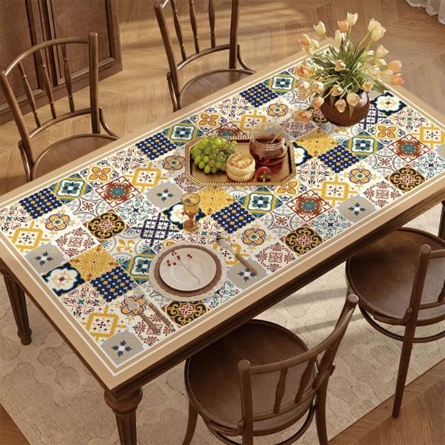 美式皮革餐桌墊 免洗防油防水防燙桌布 高級感長方形皮革茶几墊 家用桌巾檯布