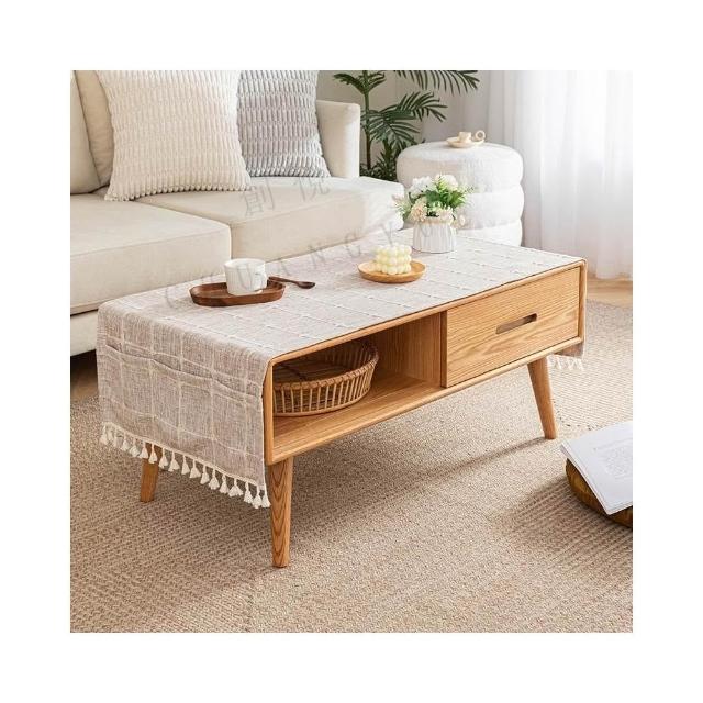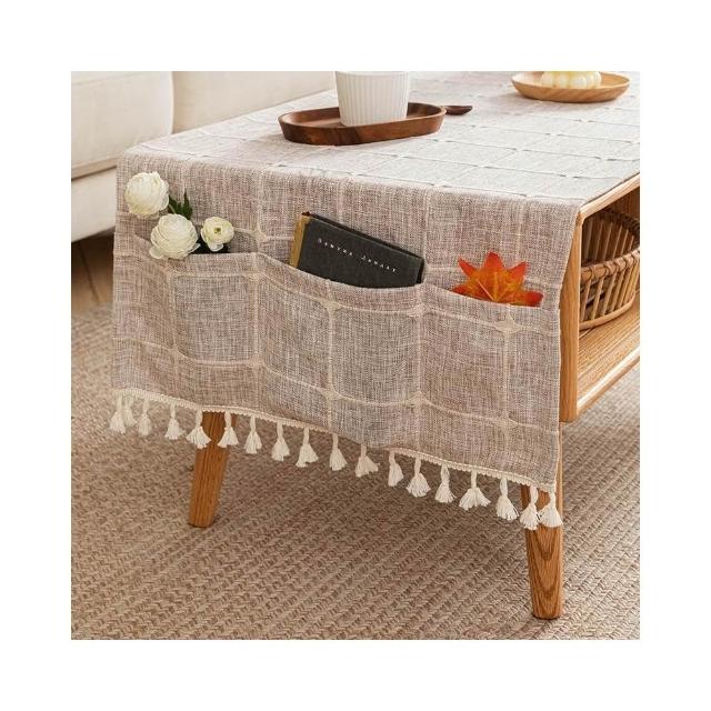 日式新款 防水桌巾 免洗茶几桌旗 帶收納口袋 防水桌布 現代優雅 餐桌布 家庭客廳棉麻檯布 裝飾布藝