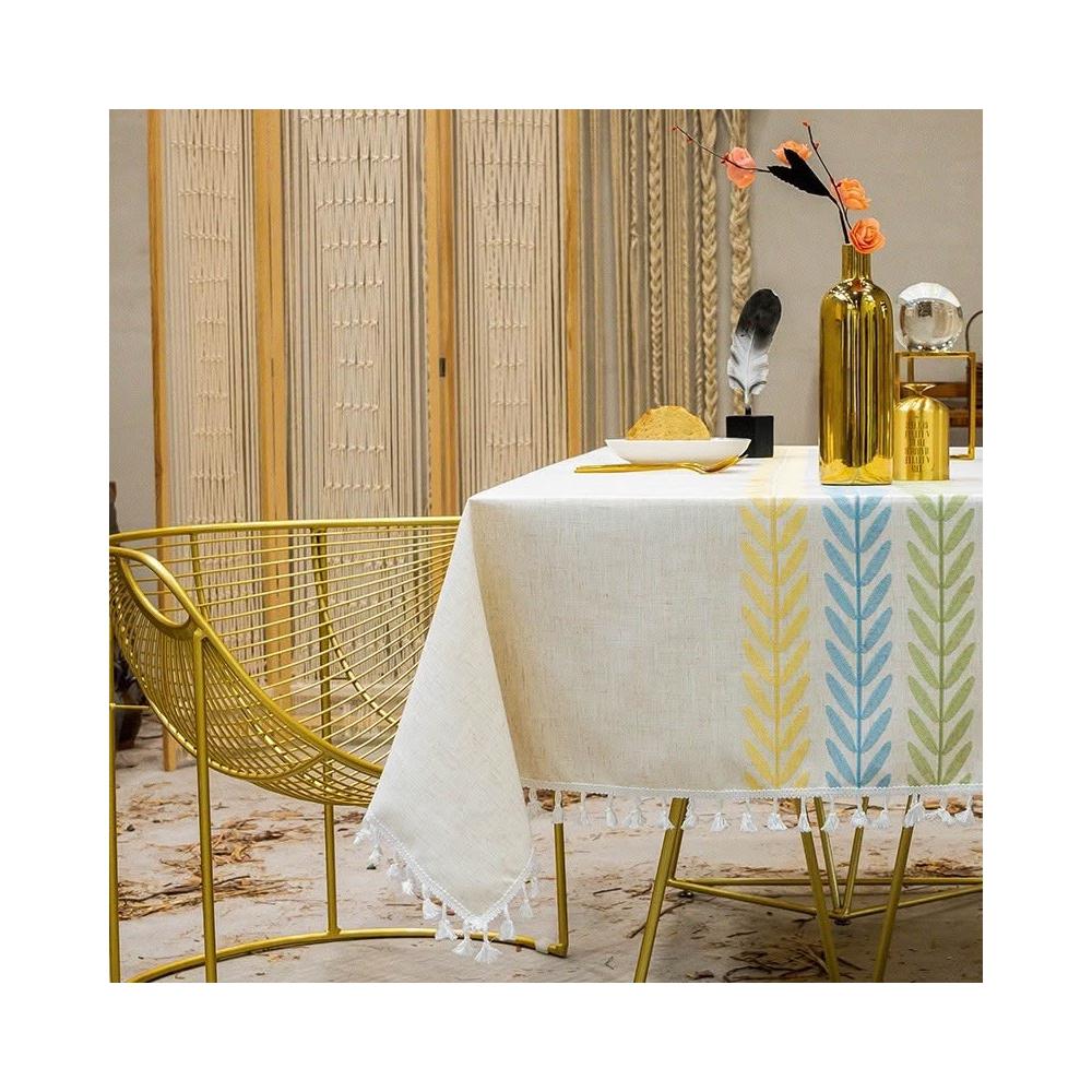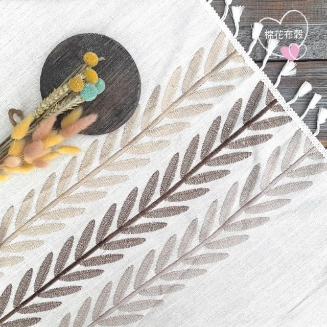 🎀棉花布穀🎀 棉麻刺繡流蘇桌布 柳枝葉電繡流蘇桌布 茶几餐廳桌布 現貨在台