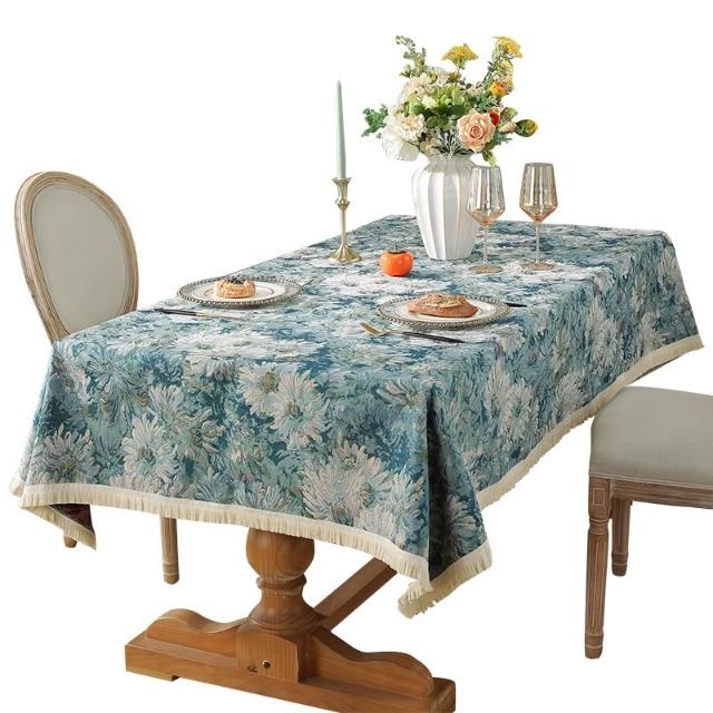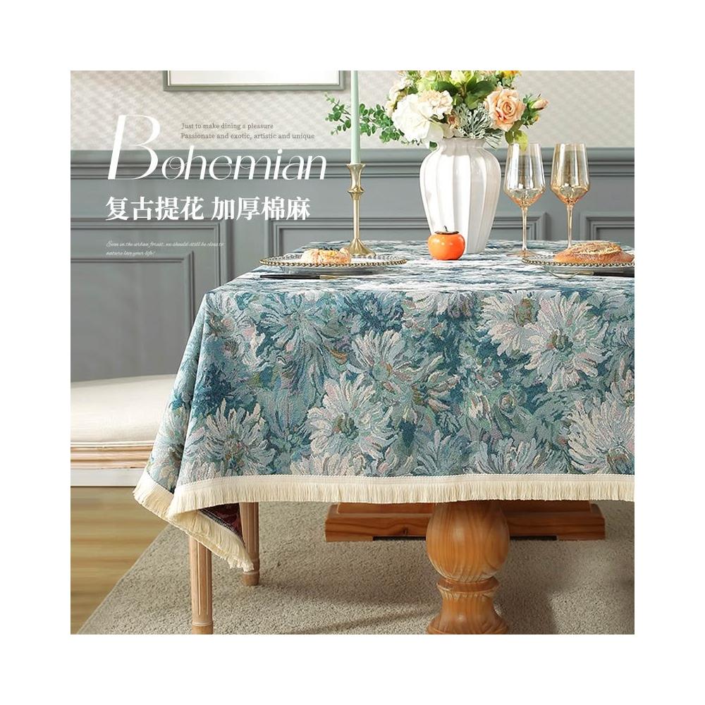 油畵風桌布 餐桌布 美式棉麻桌布 防水桌巾 防油防燙桌布 茶幾布 家用長方形臺布 書桌布 電視櫃蓋巾