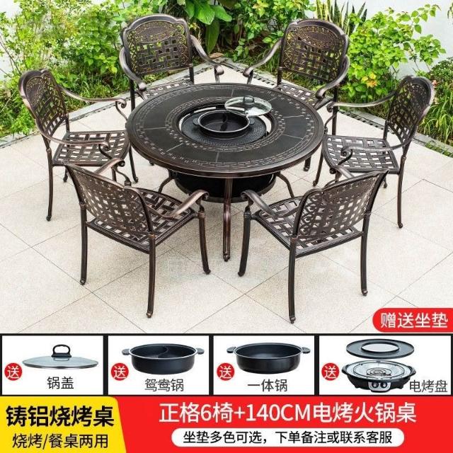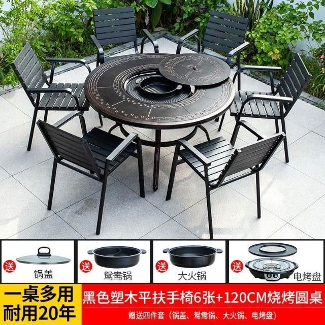 戶外桌椅 休閒桌椅 庭院桌椅 戶外燒烤桌椅多功能家用一體圓形折疊無煙旋轉兩用韓式火鍋桌