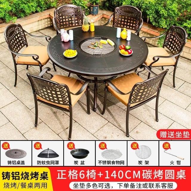 戶外桌椅 休閒桌椅 庭院桌椅 戶外燒烤桌椅多功能家用一體圓形折疊無煙旋轉兩用韓式火鍋桌