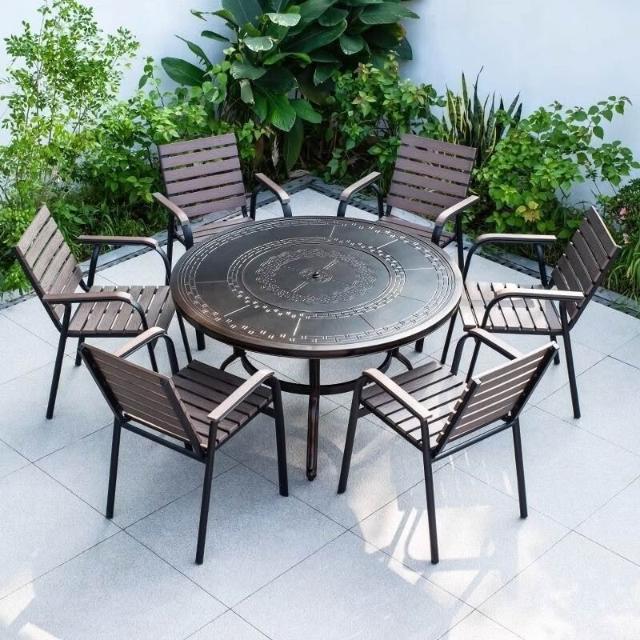 戶外桌椅 休閒桌椅 庭院桌椅 戶外燒烤桌椅多功能家用一體圓形折疊無煙旋轉兩用韓式火鍋桌