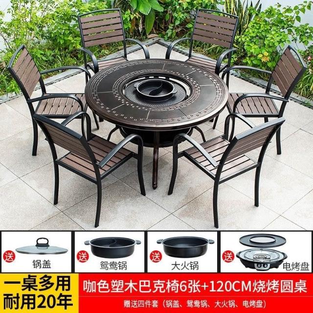 戶外桌椅 休閒桌椅 庭院桌椅 戶外燒烤桌椅多功能家用一體圓形折疊無煙旋轉兩用韓式火鍋桌