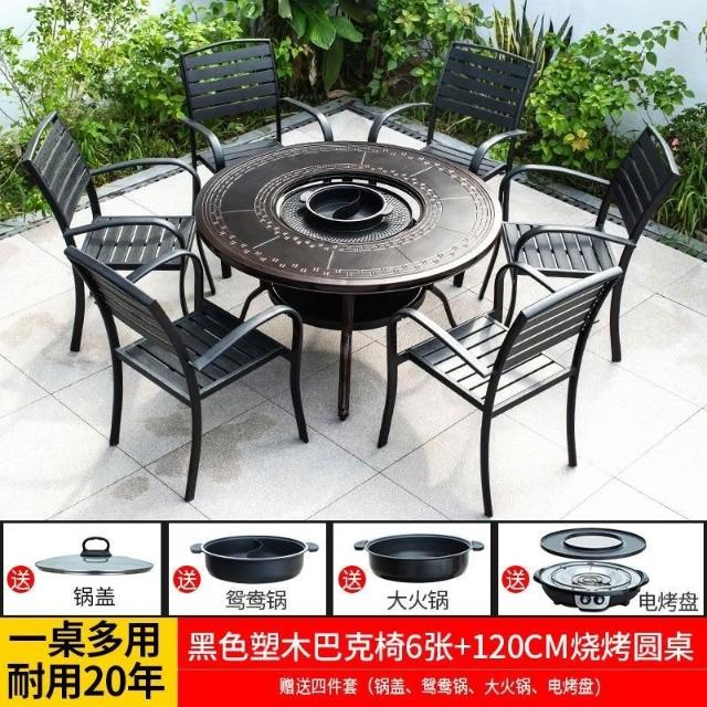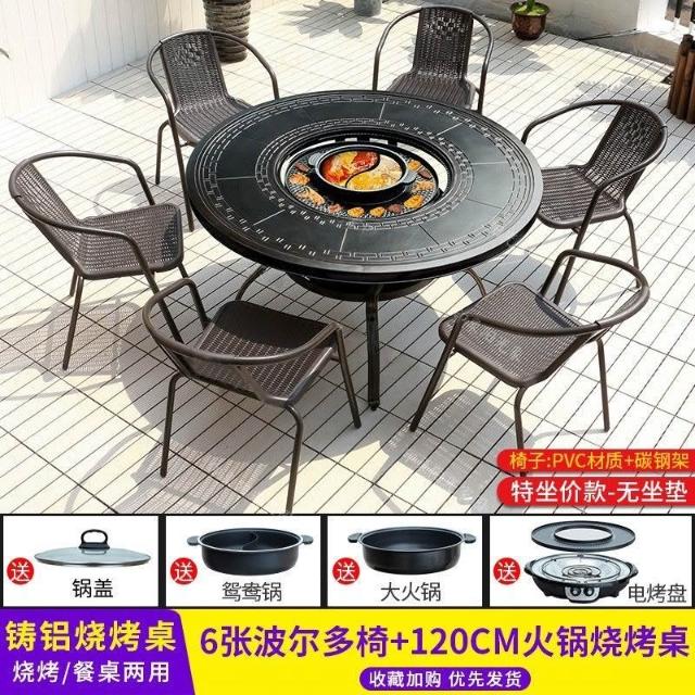戶外桌椅 休閒桌椅 庭院桌椅 戶外燒烤桌椅多功能家用一體圓形折疊無煙旋轉兩用韓式火鍋桌