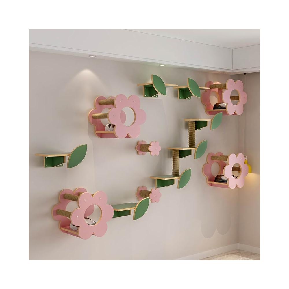 花朵貓爬架牆壁式實木掛牆貓窩貓樹一體貓架太空艙壁掛貓咪爬柱