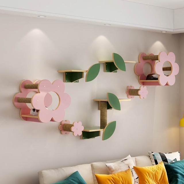 花朵貓爬架牆壁式實木掛牆貓窩貓樹一體貓架太空艙壁掛貓咪爬柱