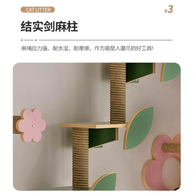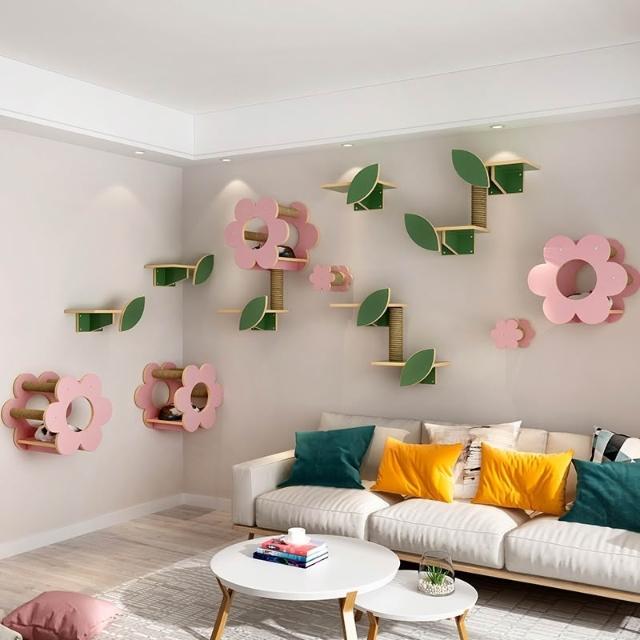 花朵貓爬架牆壁式實木掛牆貓窩貓樹一體貓架太空艙壁掛貓咪爬柱
