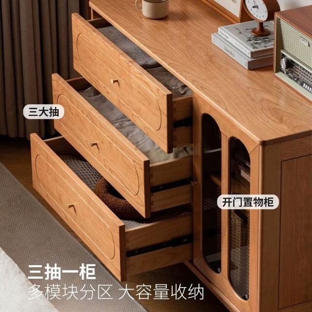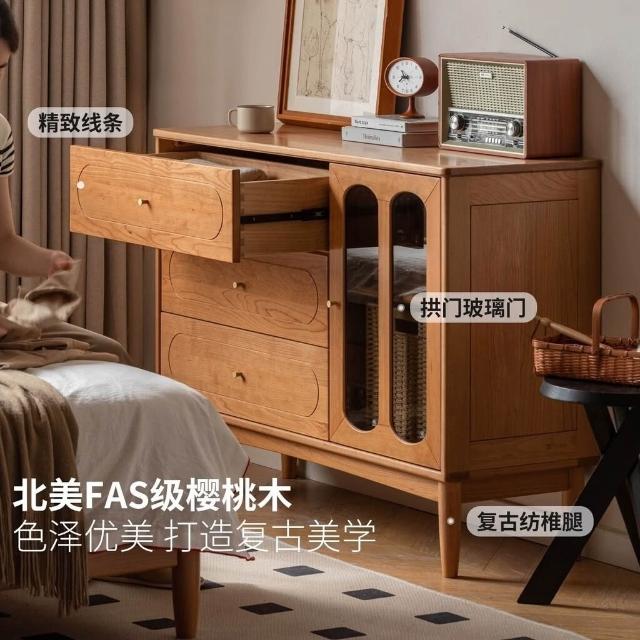 抽屜櫃 收納櫃 邊櫃 日式實木鬥櫃小戶型簡約儲物櫃臥室客廳複古抽屜櫃家用櫻桃木鬥櫥