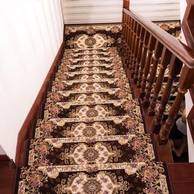 歐式樓梯地毯實木家用免膠自粘防滑耐臟樓梯墊臺階腳踏墊定製 樓梯墊 防滑地墊 樓梯止滑條 樓梯防滑 樓梯止滑墊 樓梯地墊
