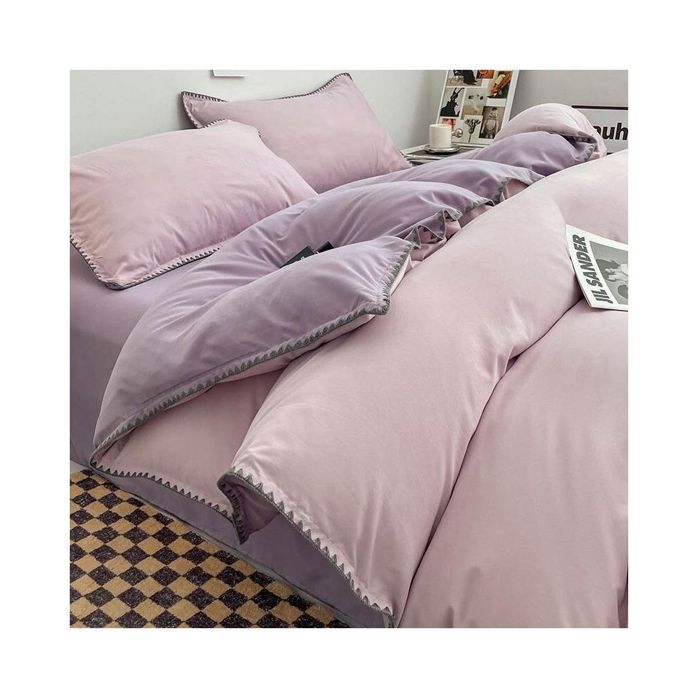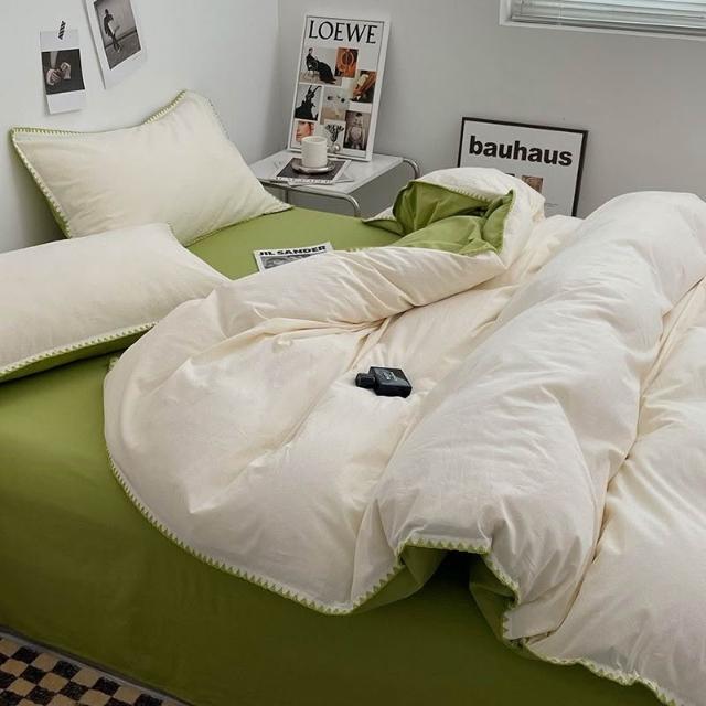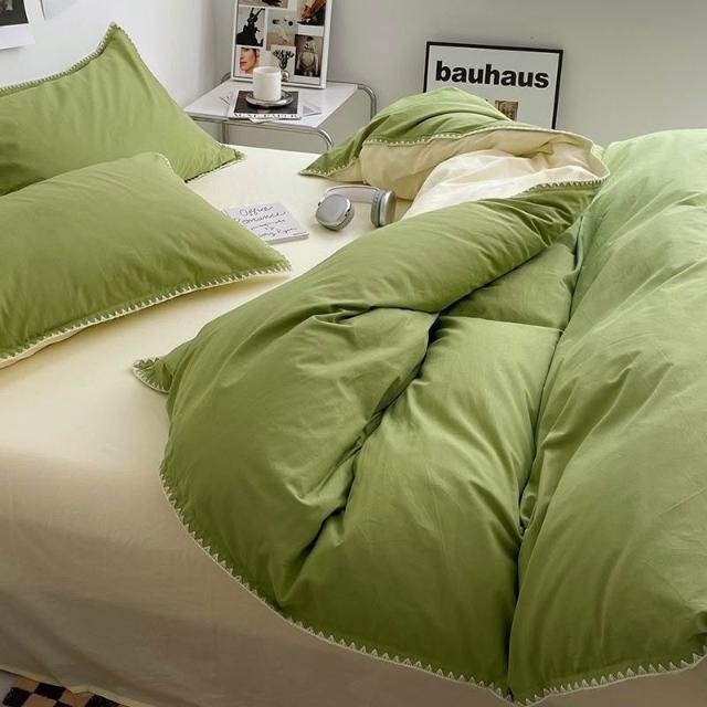 北歐風ins簡約水洗棉四件套貝殼邊超軟床單被套宿舍三件套冬被 被子 厚被子 被芯 保暖冬被 棉被 暖暖被 學生宿舍被褥