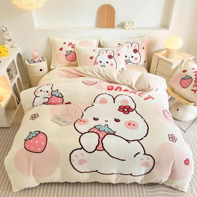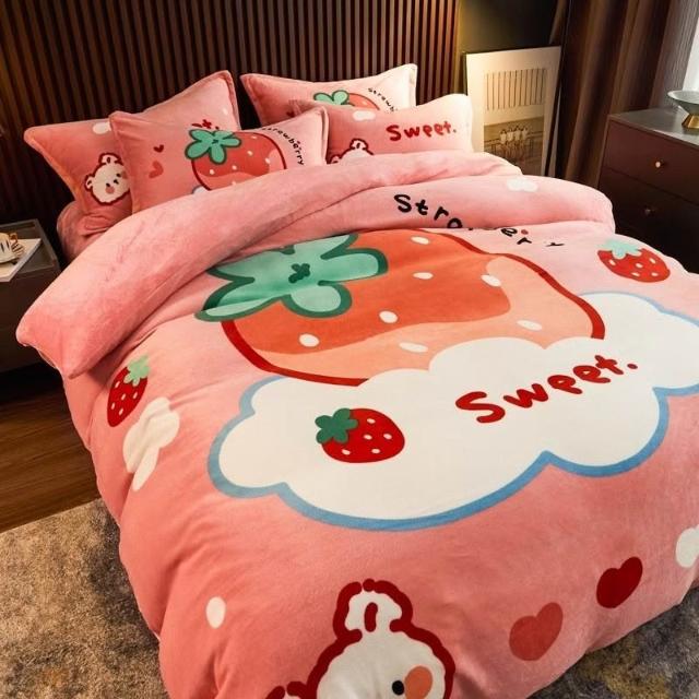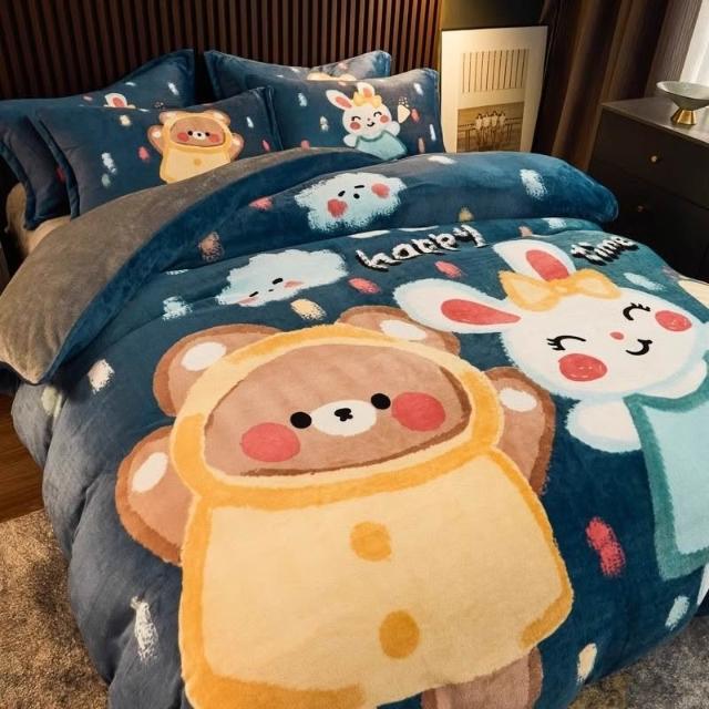 牛奶絨四件套加厚珊瑚絨床單雙面絨被套法萊絨床上用品冬季冬被 被子 厚被子 被芯 保暖冬被 棉被 暖暖被 學生宿舍被褥