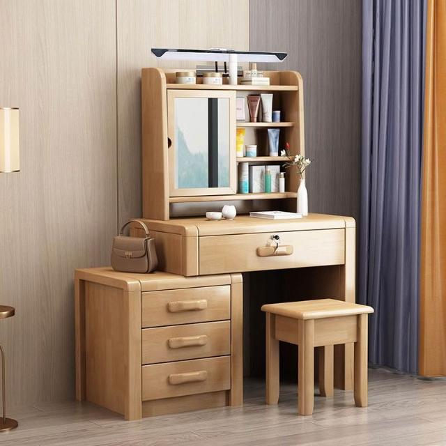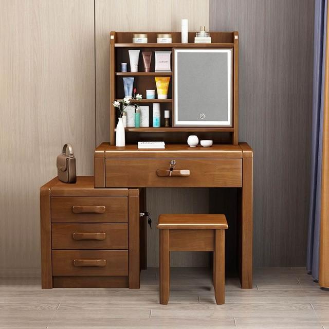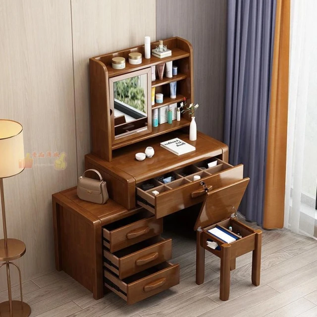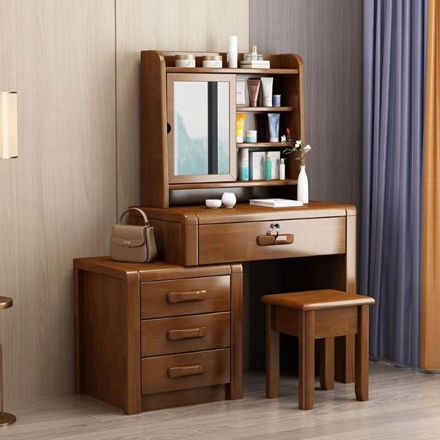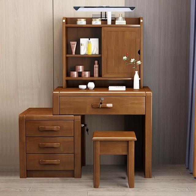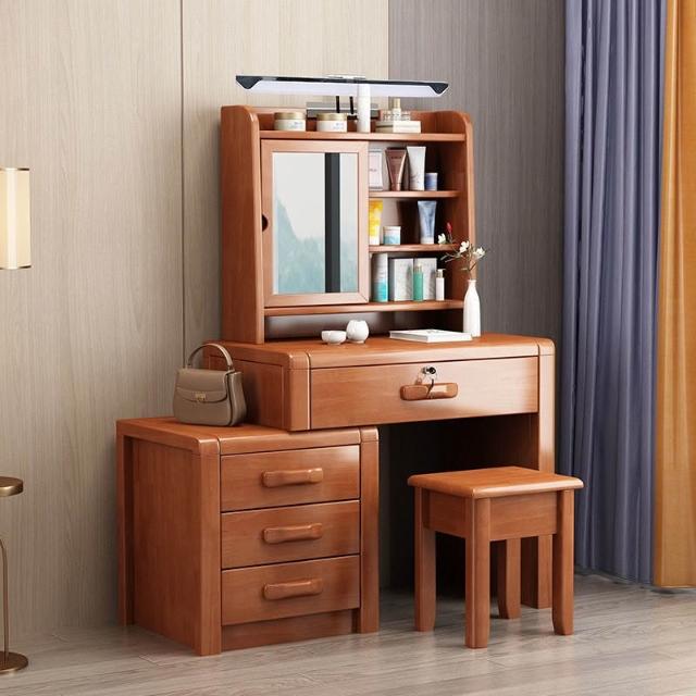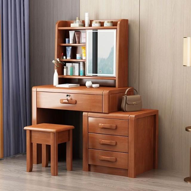 熱銷 全實木梳妝臺 臥室中式化妝臺 小戶型簡約 純實木書桌 伸縮現代化妝桌