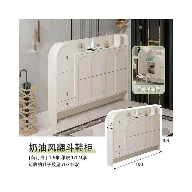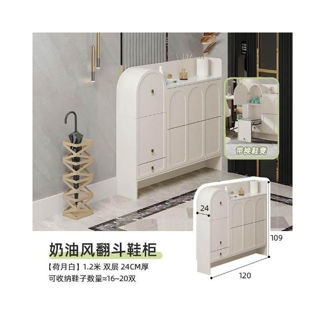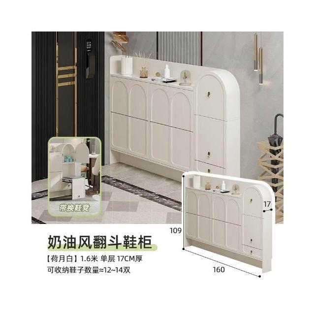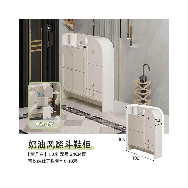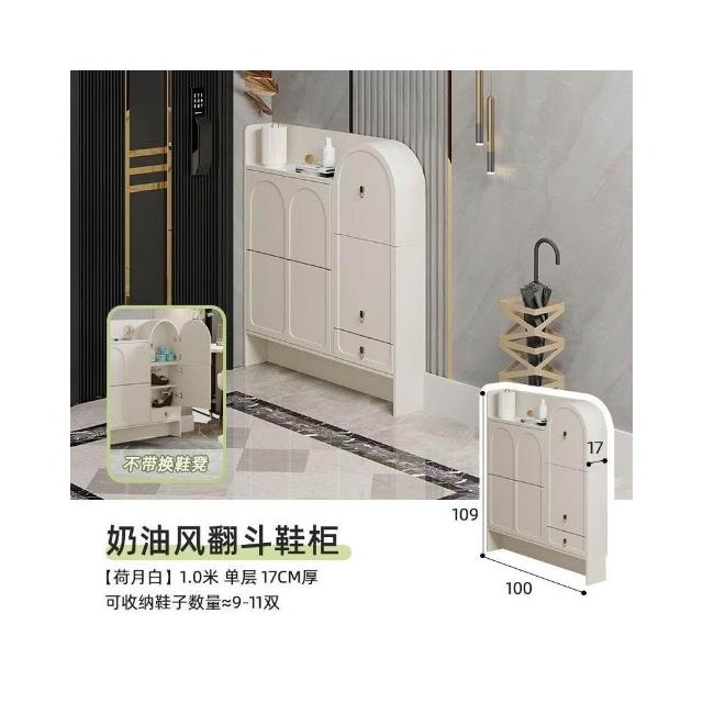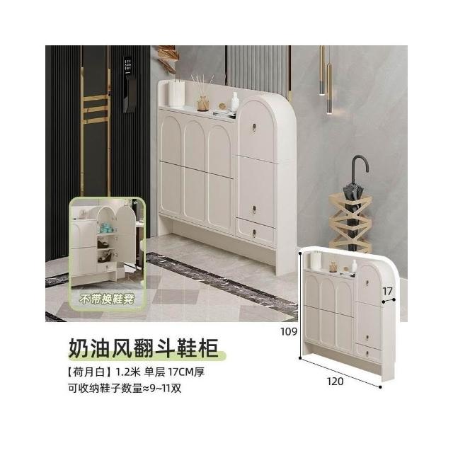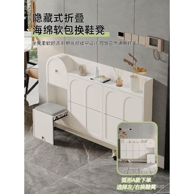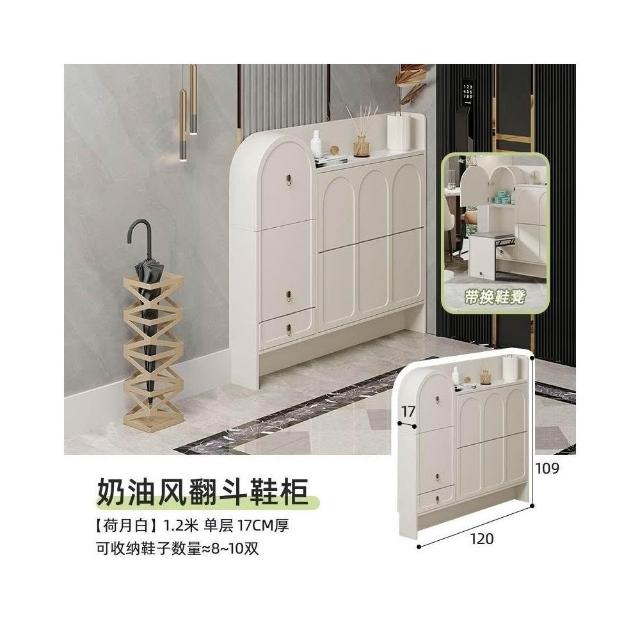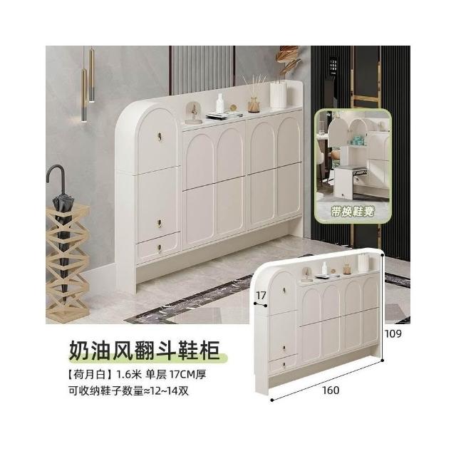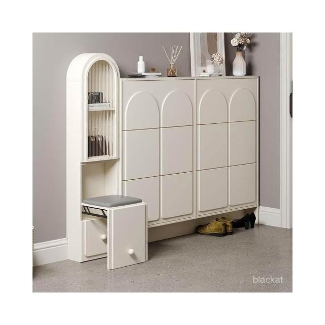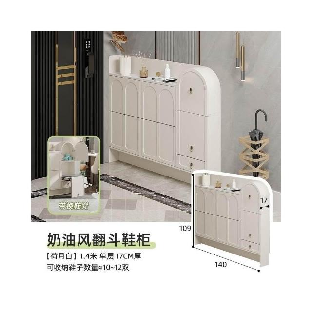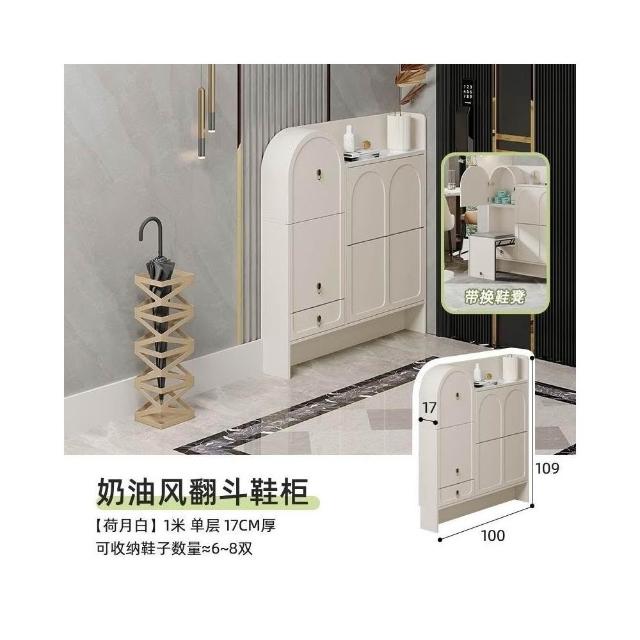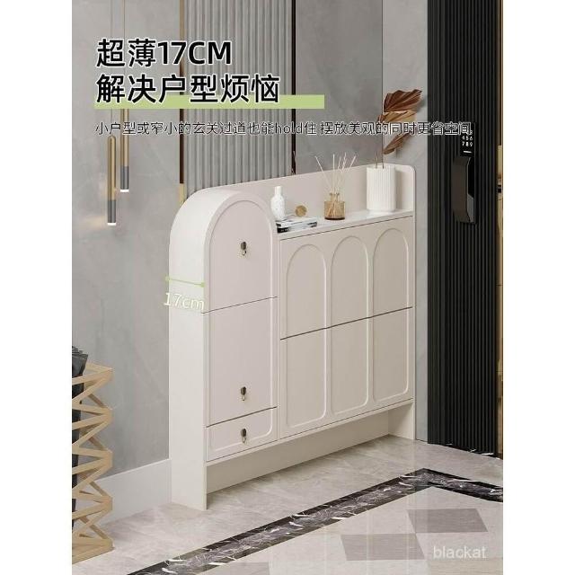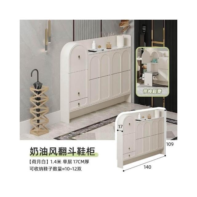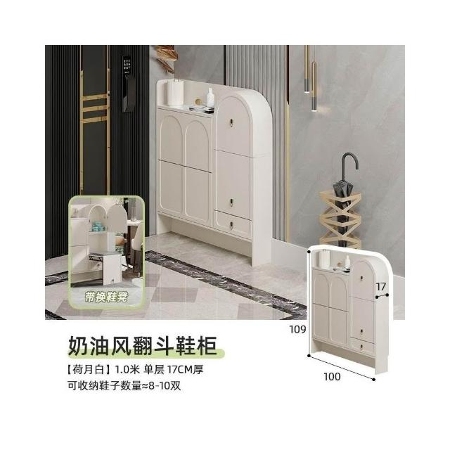 奶油風超薄翻鬥鞋櫃17cm窄家用門口2024新款入戶玄關鞋櫃帶凳一體 8FUX