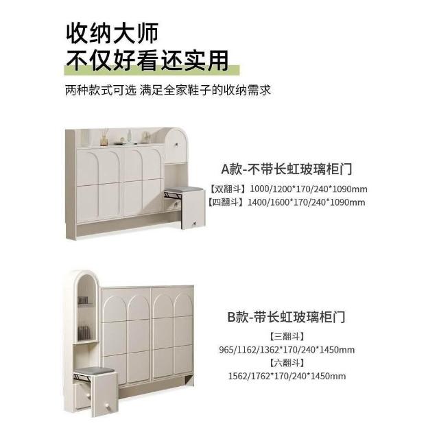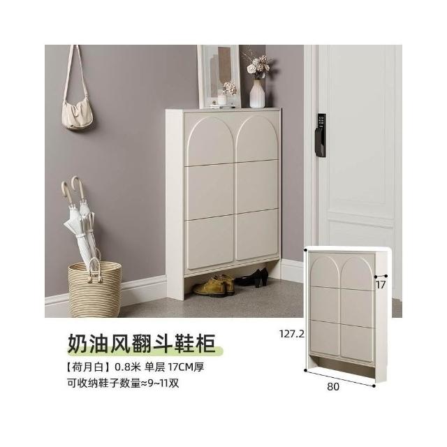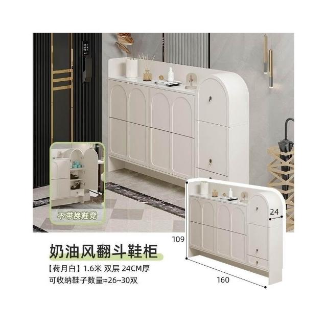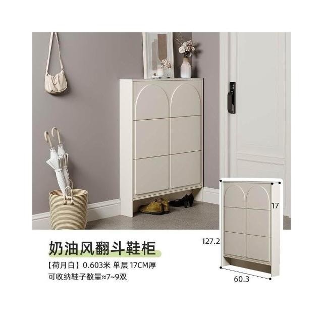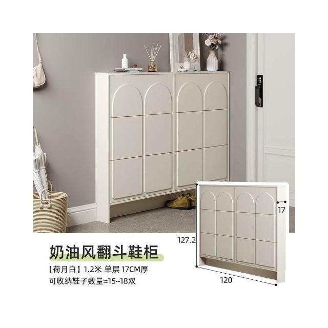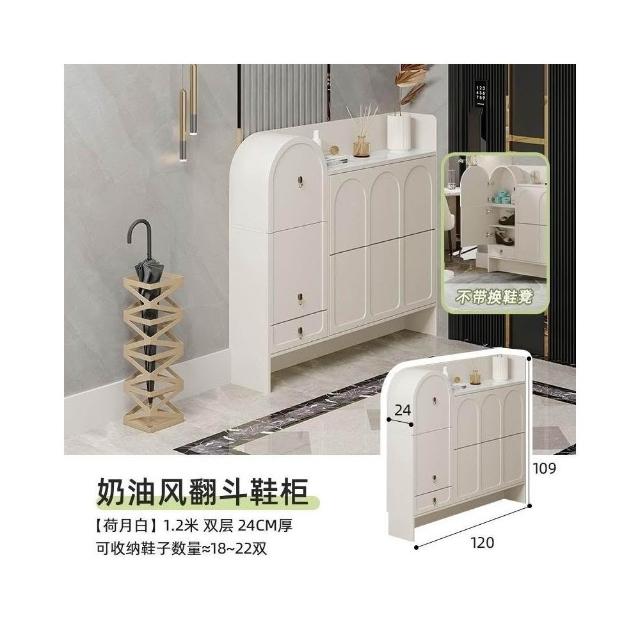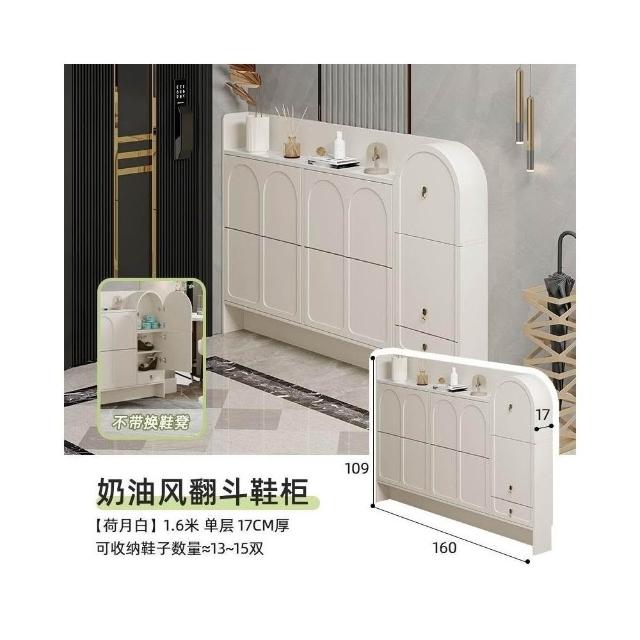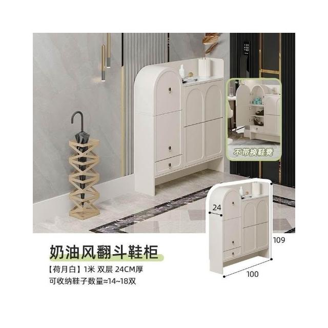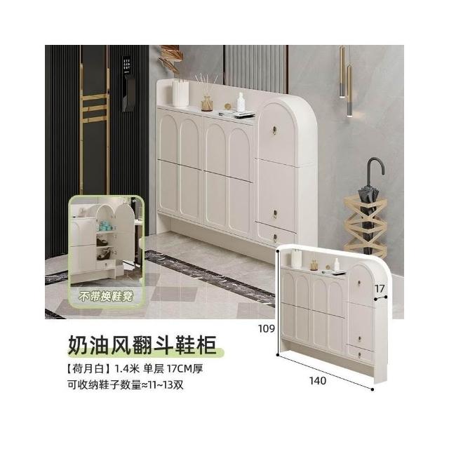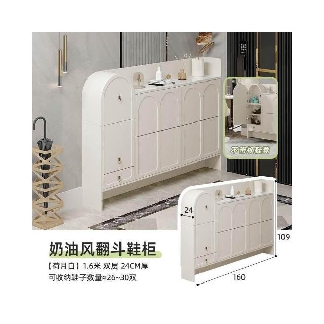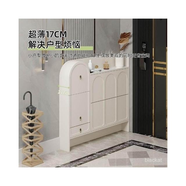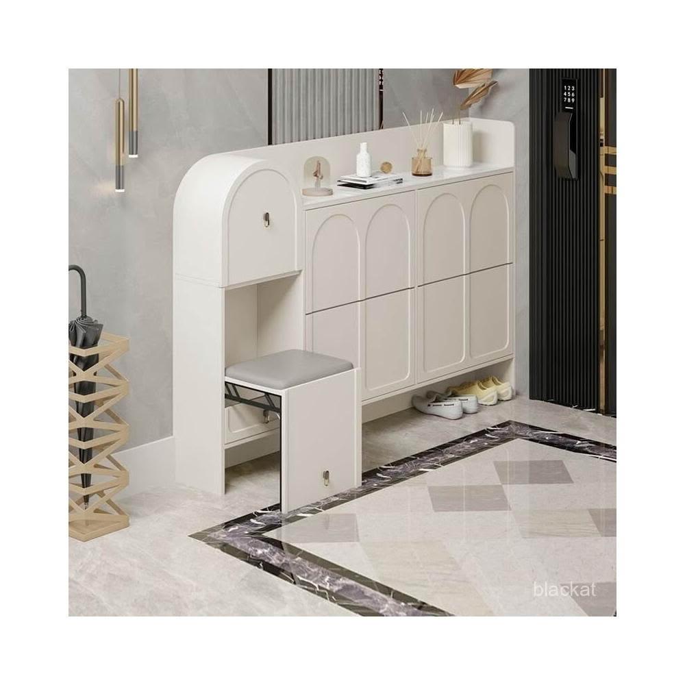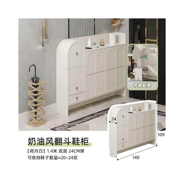 奶油風超薄翻鬥鞋櫃17cm窄家用門口2024新款入戶玄關鞋櫃帶凳一體 8FUX