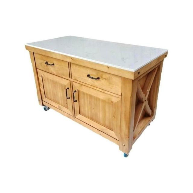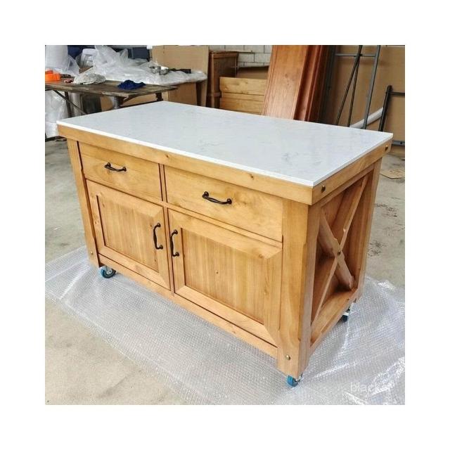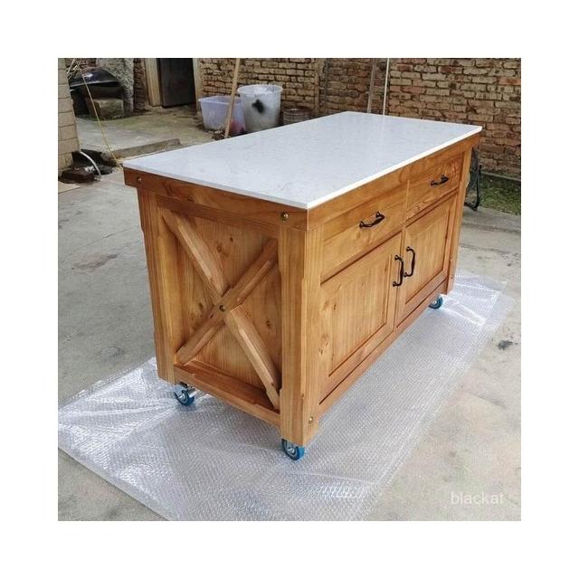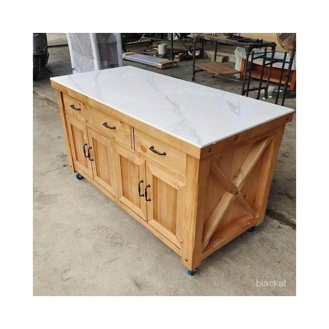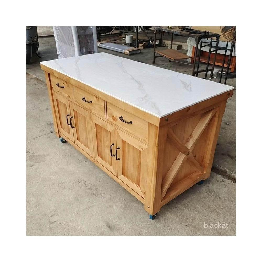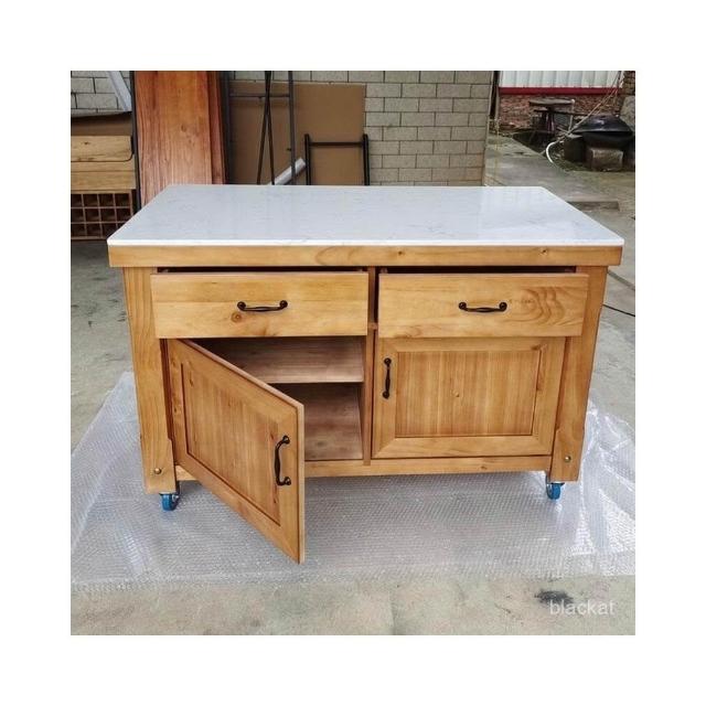 工作臺廚房操作臺料理臺家用美式實木可移動中島臺帶櫃門餐邊櫃 WKCM