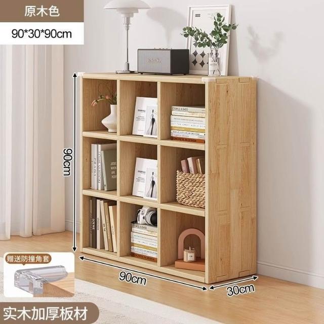 免運 全實木書架幼兒園榫卯拚裝九宮格置物架落地靠墻組閤傢用收納書櫃 ROXJ COHE