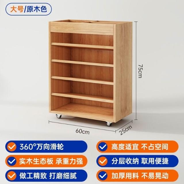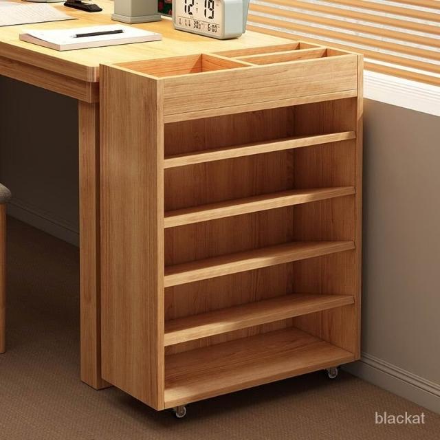 桌邊實木書架落地可移動置物架敎室課桌旁側書本收納儲物兒童書櫃 OX2V