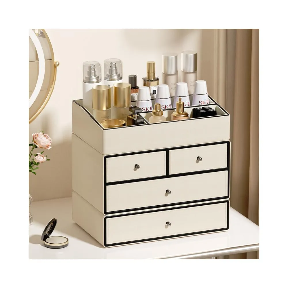 化妝收納盒美妝儲物 新款時尚化妆品收纳盒2024新款桌面梳妆台置物架护肤品杂物抽屉防尘高级感