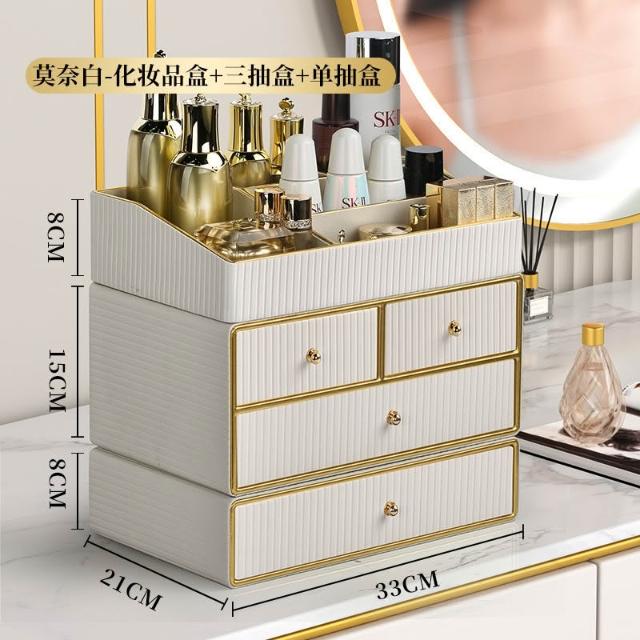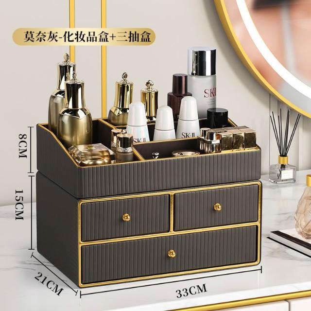 化妝收納盒美妝儲物 新款時尚化妆品收纳盒2024新款桌面梳妆台置物架护肤品杂物抽屉防尘高级感