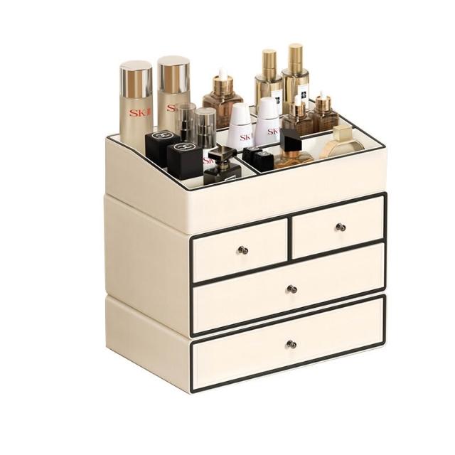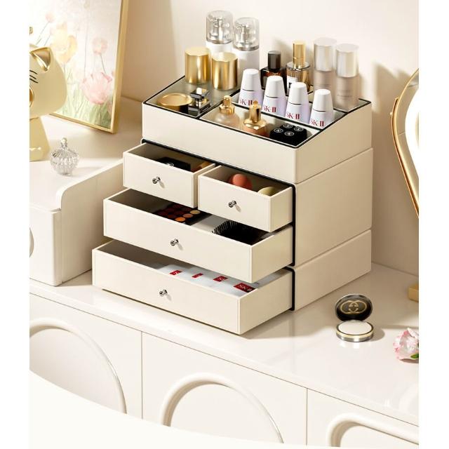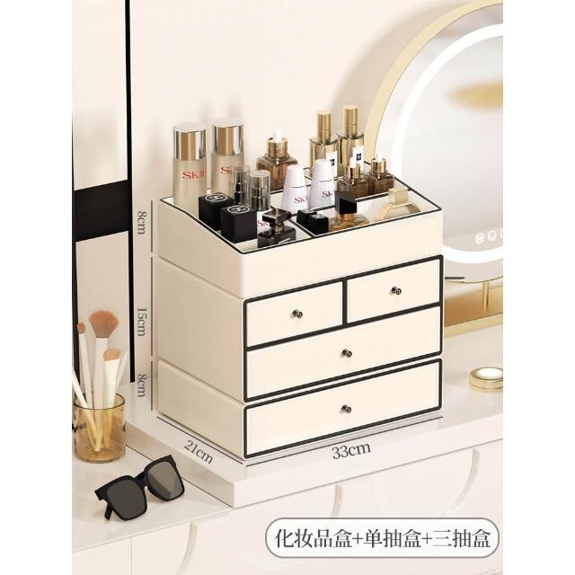 化妝收納盒美妝儲物 新款時尚化妆品收纳盒2024新款桌面梳妆台置物架护肤品杂物抽屉防尘高级感