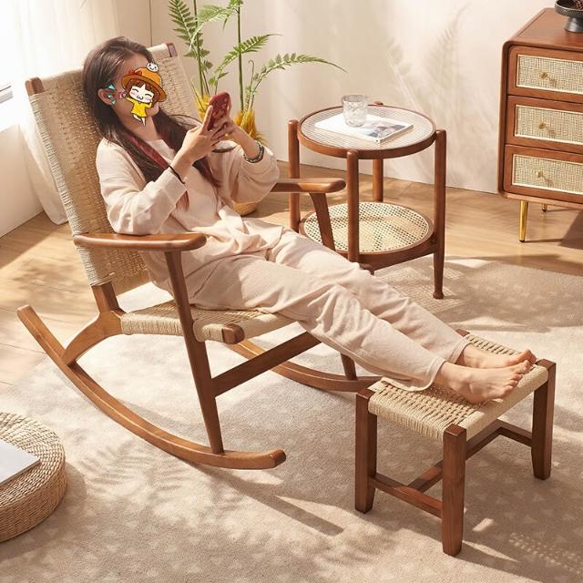 沙發椅 搖搖椅 企鵝椅 蛋殼椅 企鵝搖椅 懒人沙發 客厅摇椅绳编复古懒人摇摇椅大人高靠背实木午休阳台休闲躺椅椅子