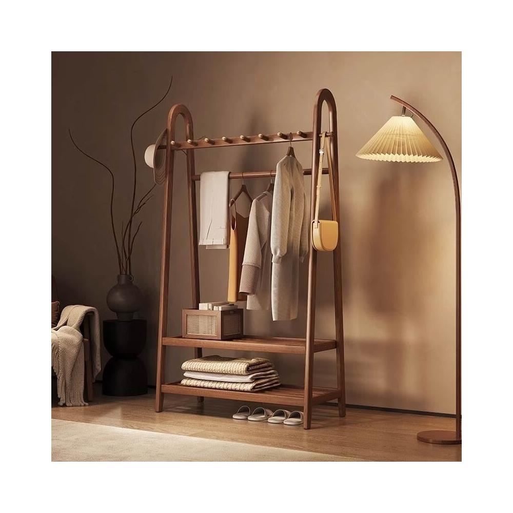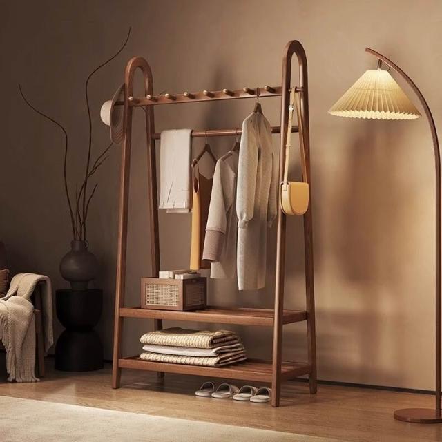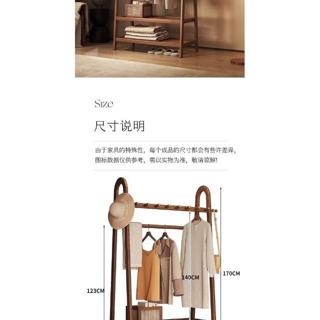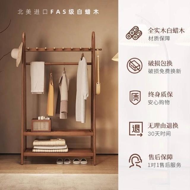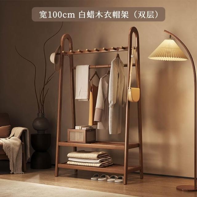 網紅置物架 實木掛衣架落地臥室白蠟木高端衣帽架置物鞋架銅木家用衣架