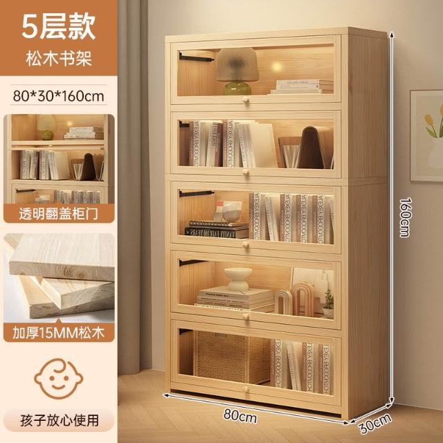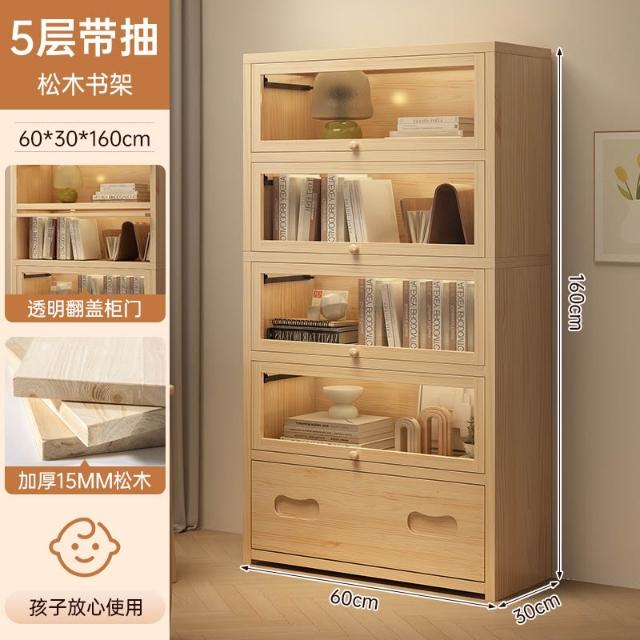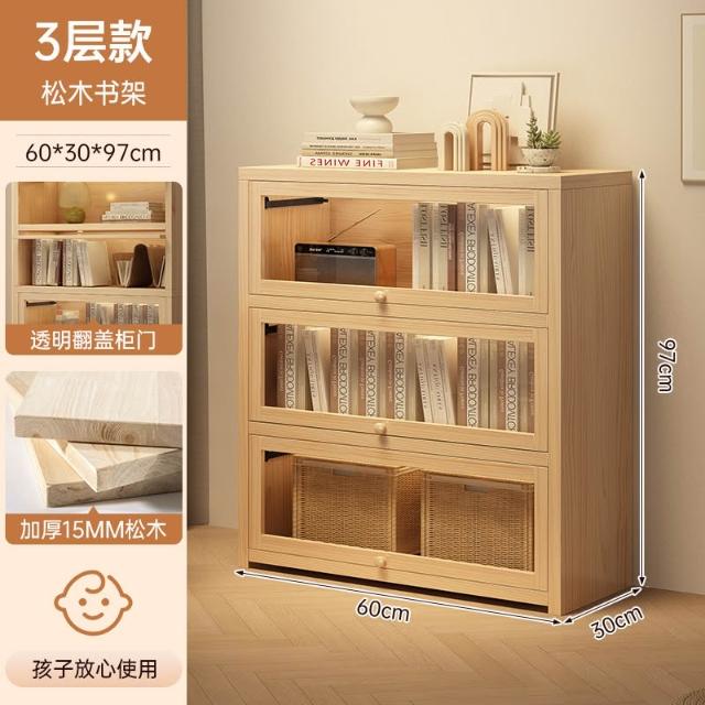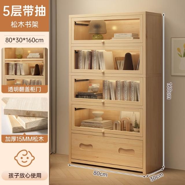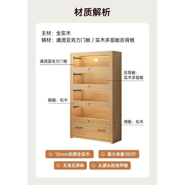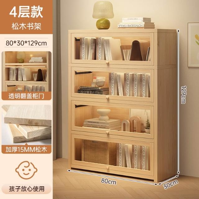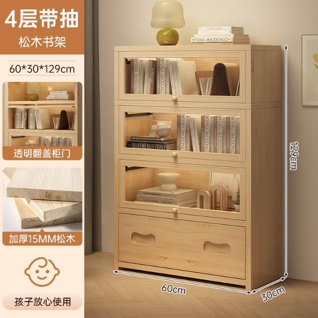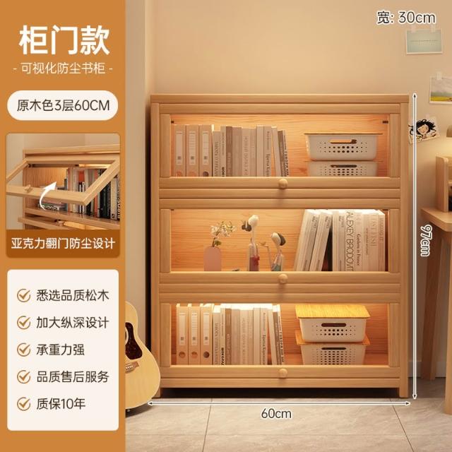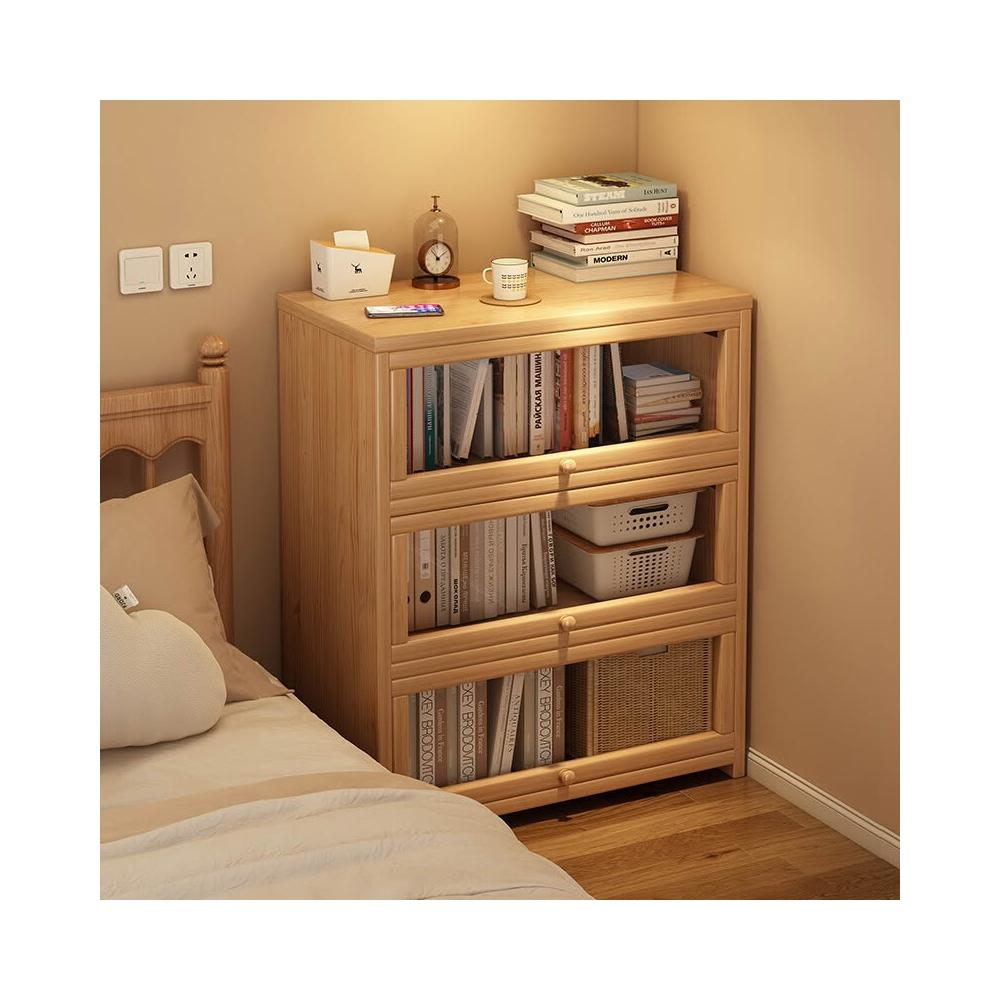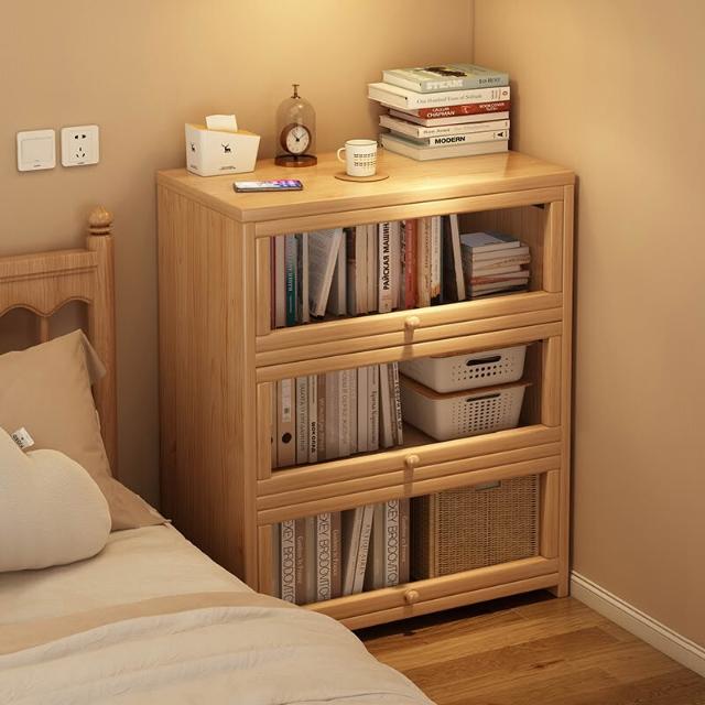 实木床头书柜储物柜床边置物柜一体落地卧室带门靠墙防尘收纳柜子