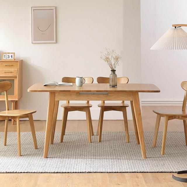 日式餐桌高檔餐桌飯桌伸縮餐桌家用小戶型吃飯桌子原木風餐桌椅組合日式長方形實木餐桌