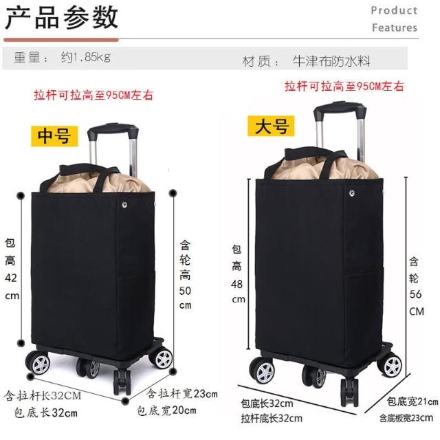 折疊購物收納車買菜拉車 購物車 折疊手推車万向轮买菜小拉车拉杆袋购物包包手拉车折叠拉杆车布袋小拖车家用