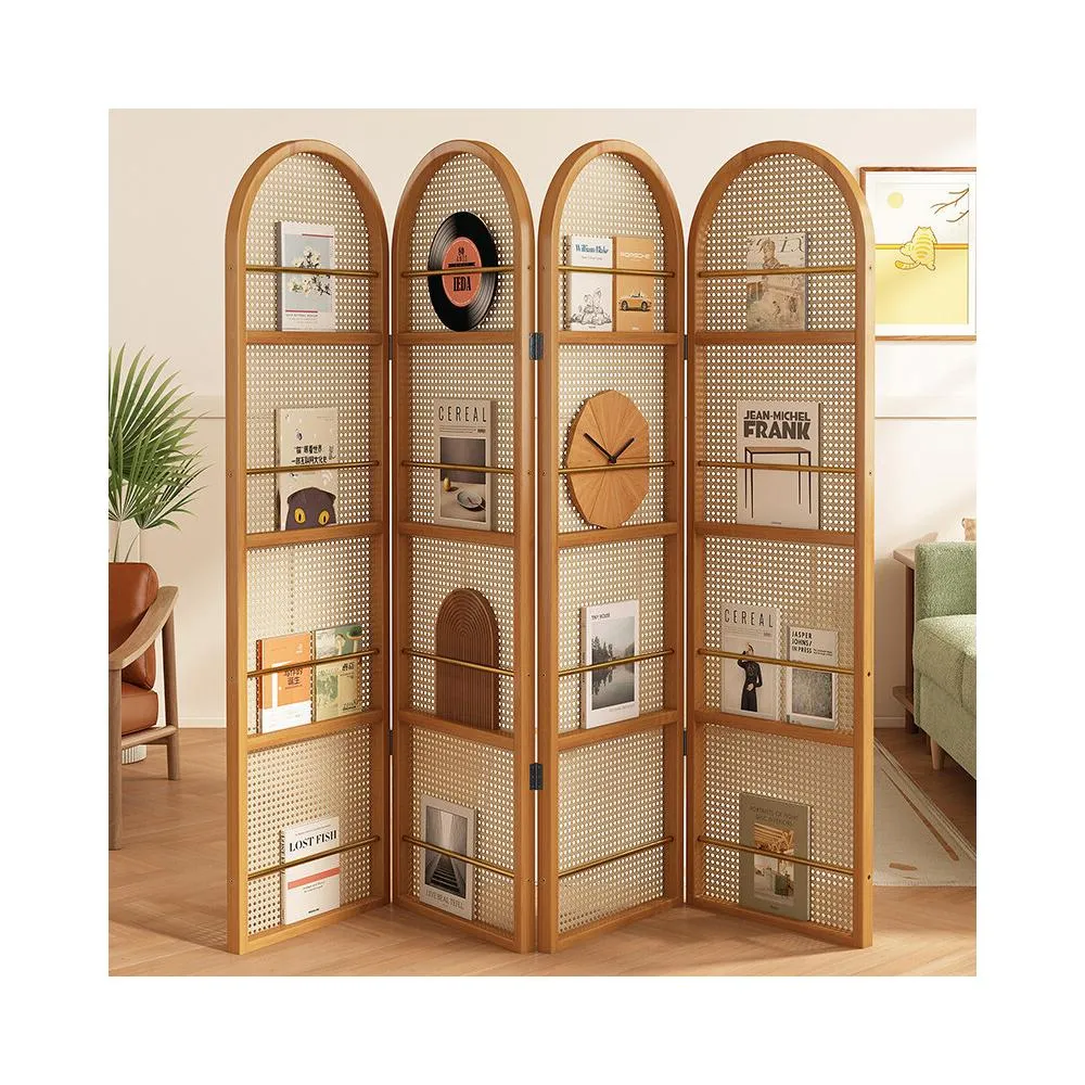 高檔網紅屏風 實用屏風新中式屏风隔断客厅藤编折叠格栅底座办公室餐饮简易遮挡帘中古风