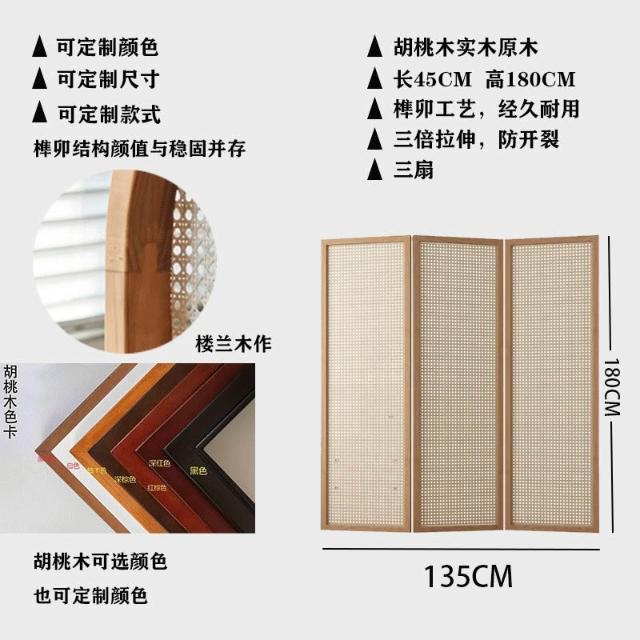 高檔網紅屏風 實用屏風新中式实木藤编屏风隔断客厅卧室遮挡家用小户型移动折叠定制折屏