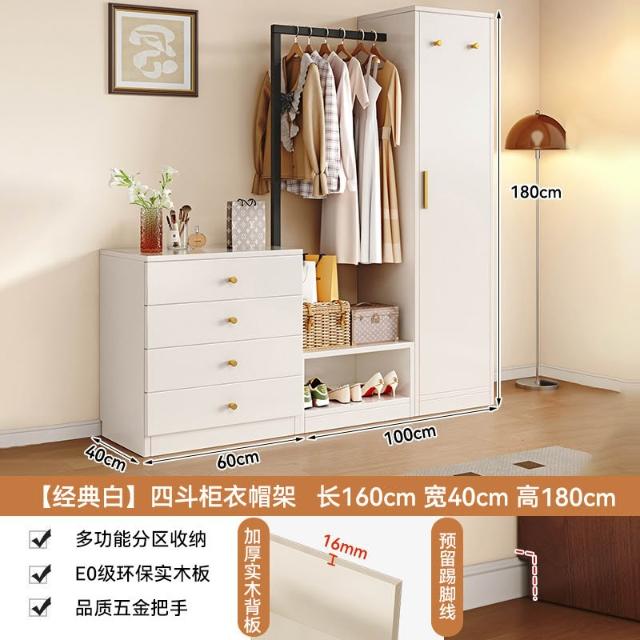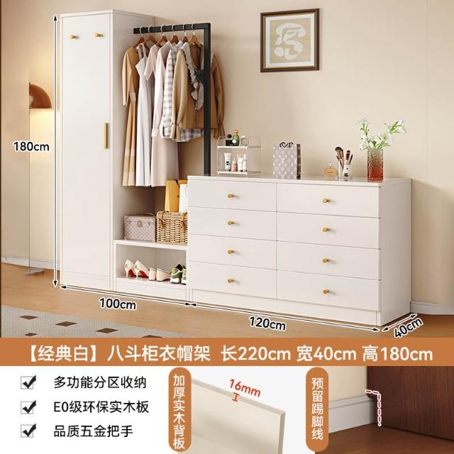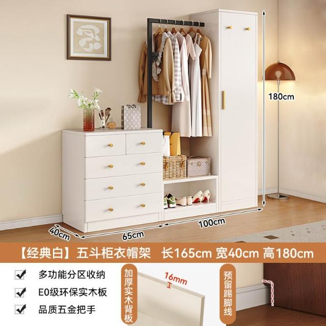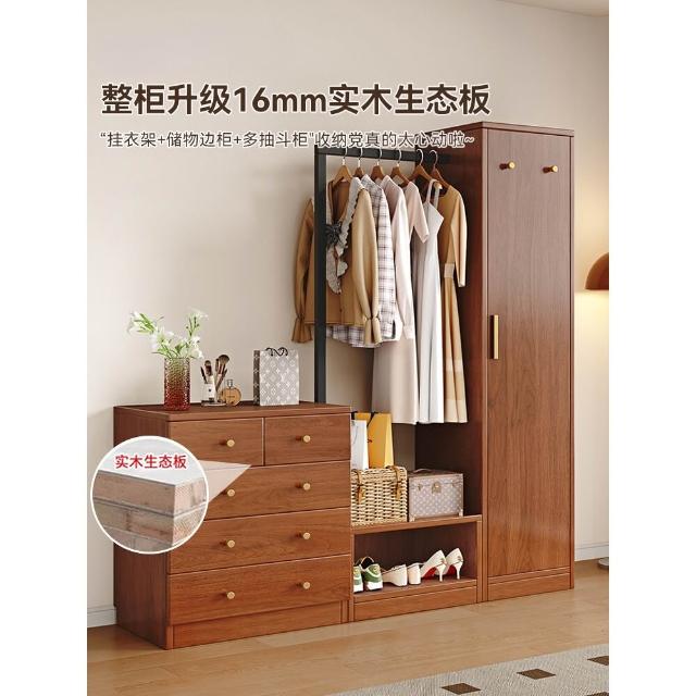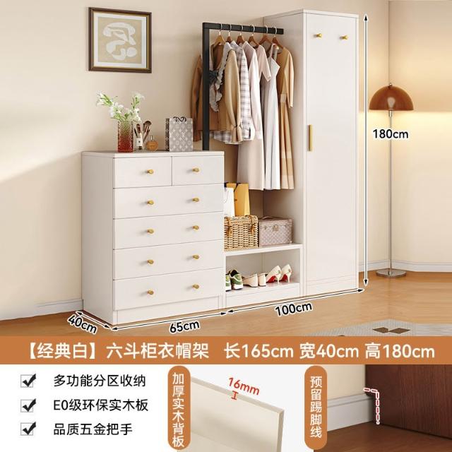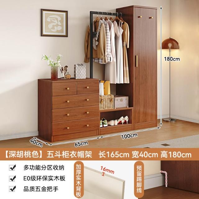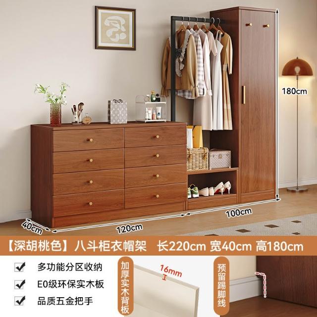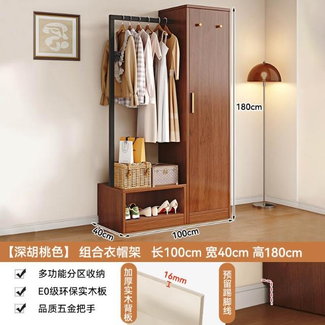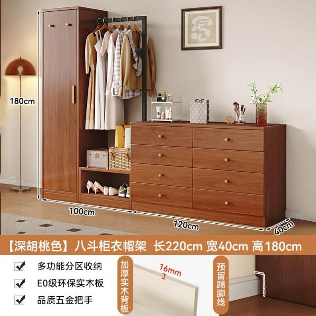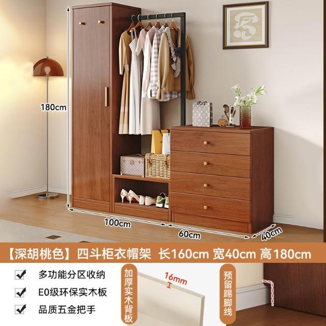 挂衣架卧室全实木衣帽架小户型斗柜衣架一体组合柜简约床尾收纳柜