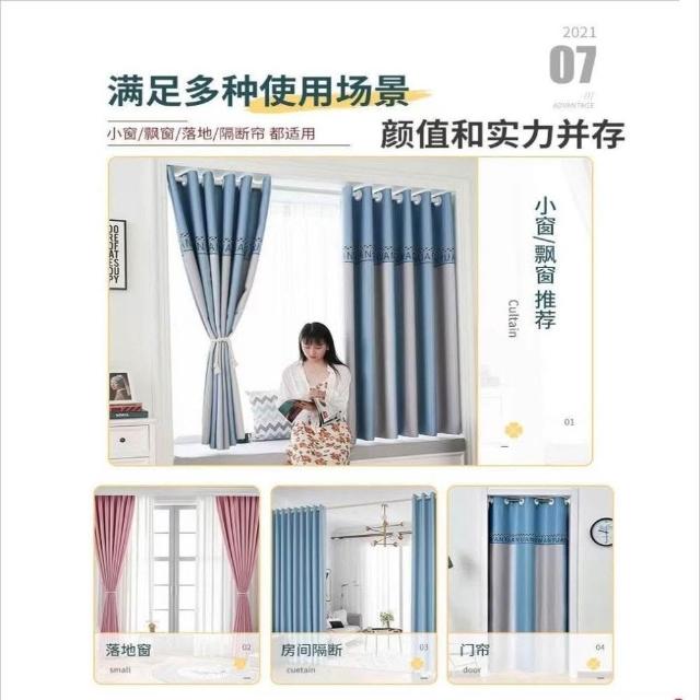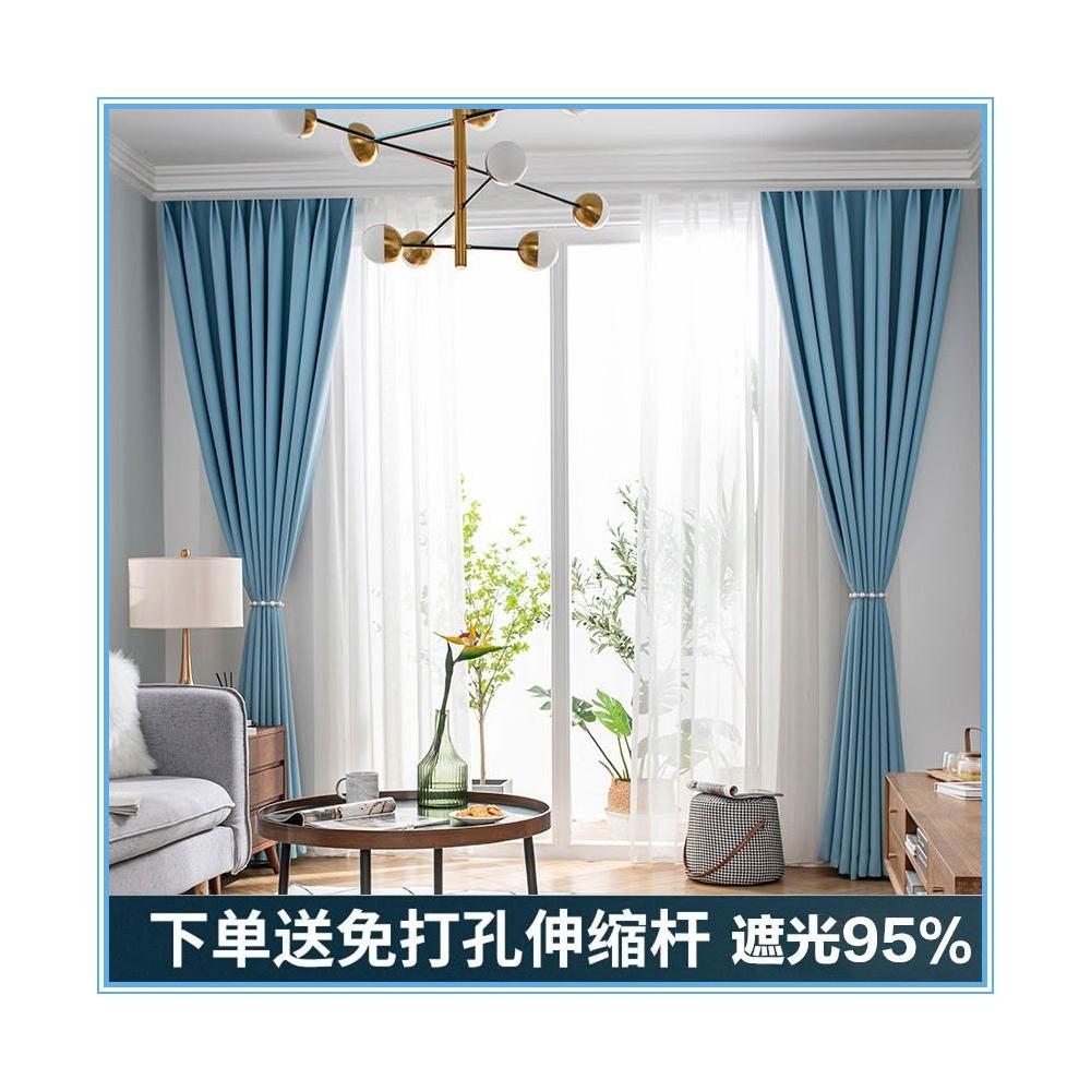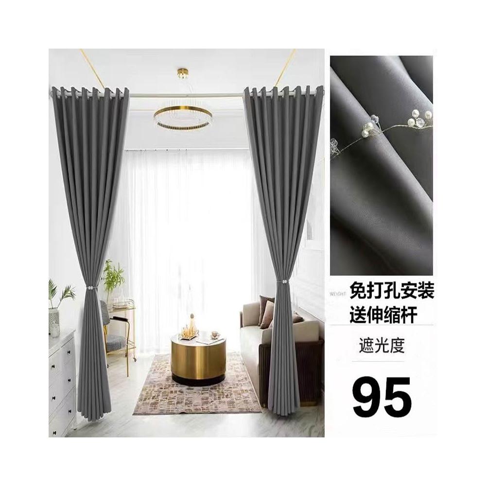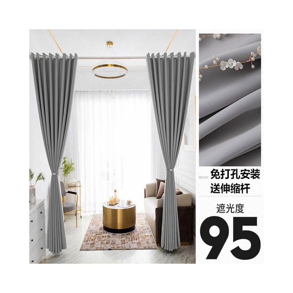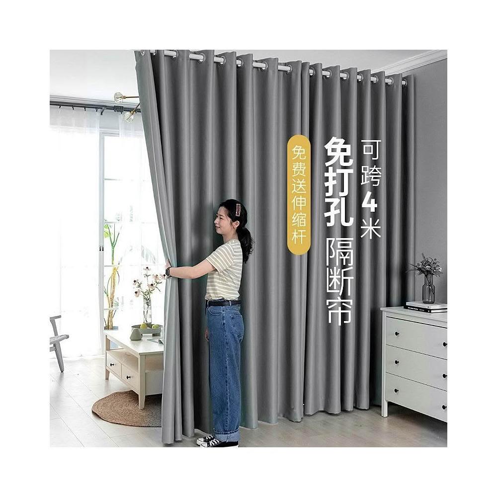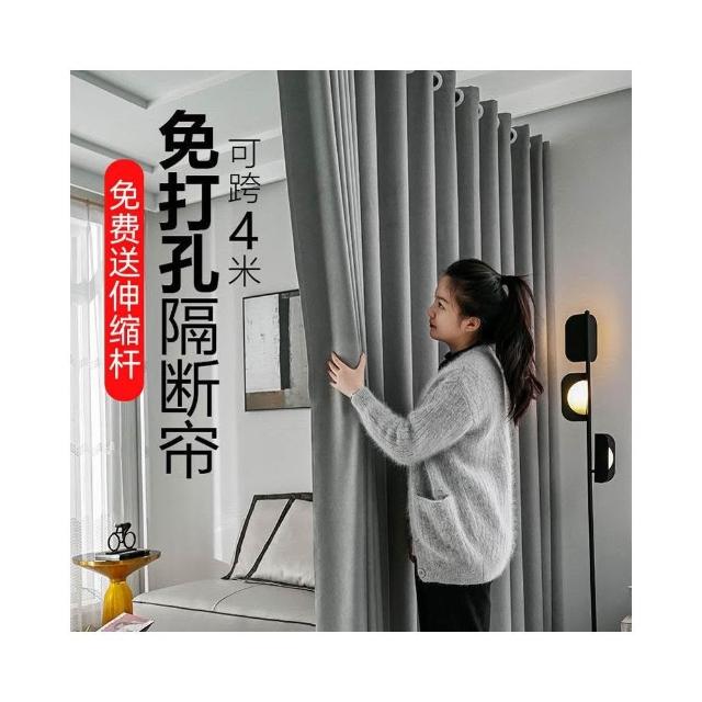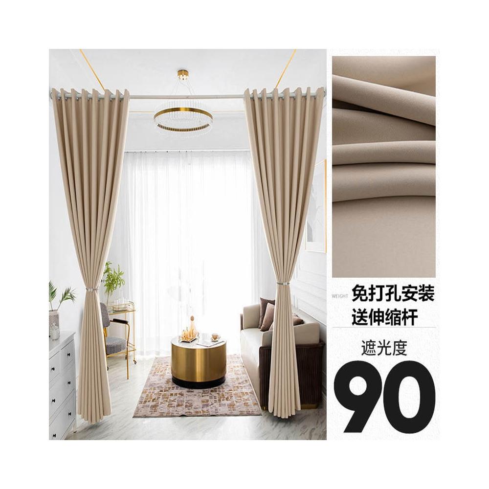 客製化窗簾免打孔安裝隔斷簾窗簾遮光窗防曬隔熱伸縮桿一整套客廳臥室飄成品遮光隔熱 隔音降噪 客廳臥室窗簾