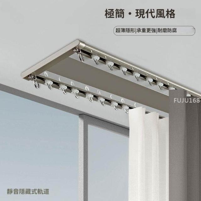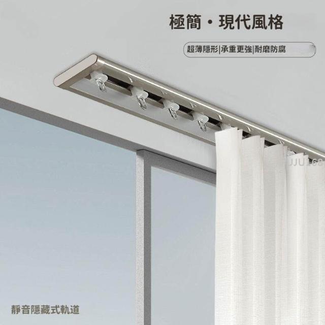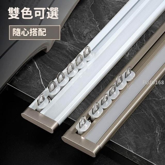 窗簾軌道免打孔滑輪滑軌導軌直軌鋁合金加厚頂裝內開窗靜音超薄軌 軌道 門簾 窗簾 -