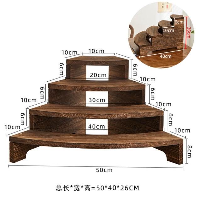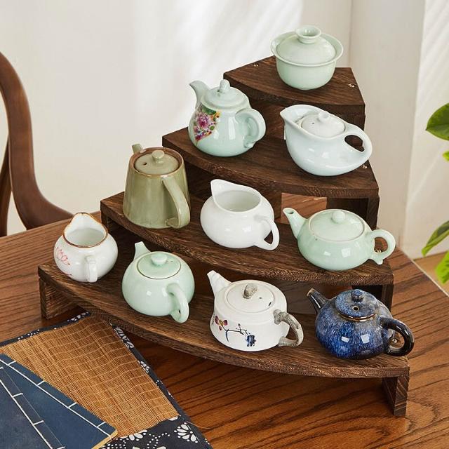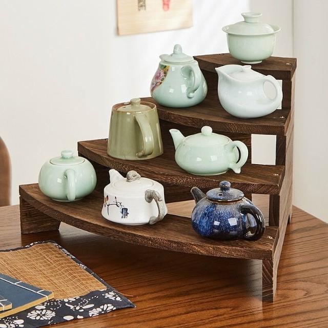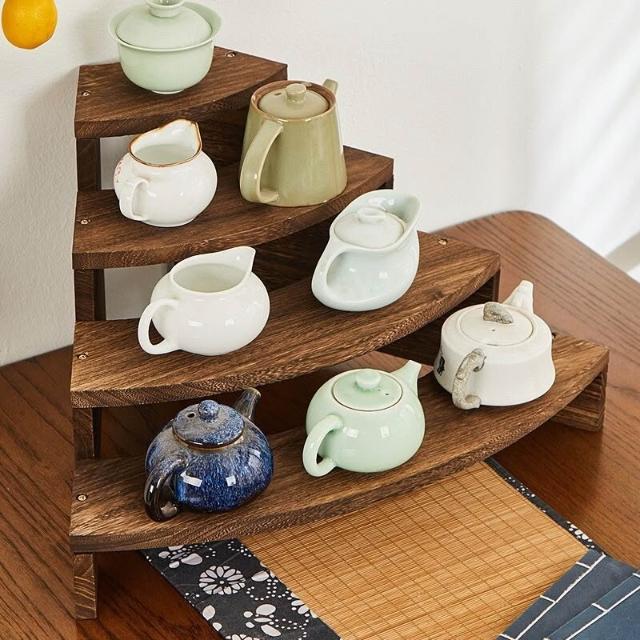 實木階梯手辦首飾展示架桌面茶架收納置物架博古架茶壺擺放架茶具 -