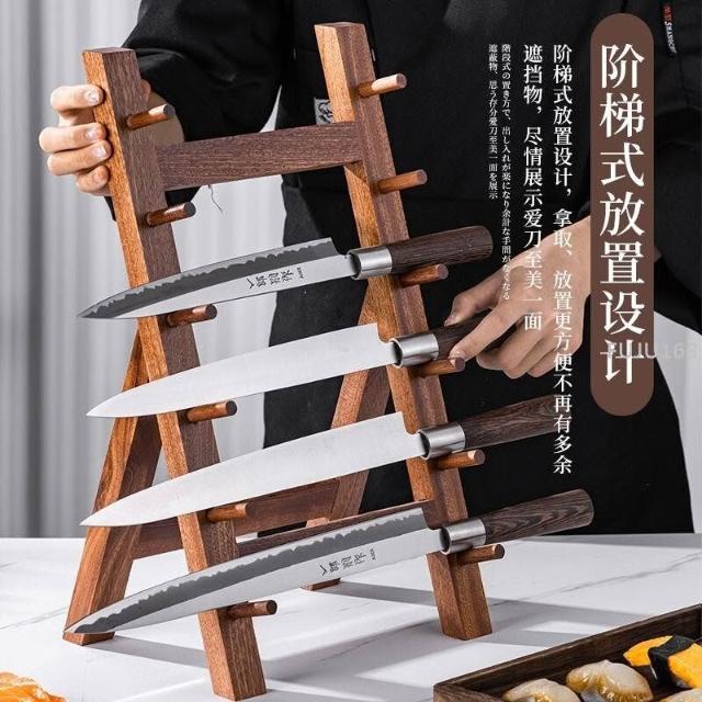 日式壽司刺身橫放刀架刀座商用廚房刀具展示架日式木刀架菜刀架 -