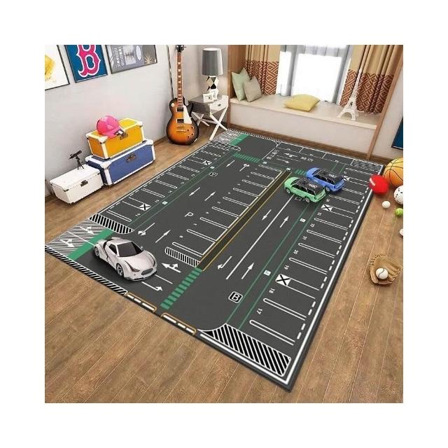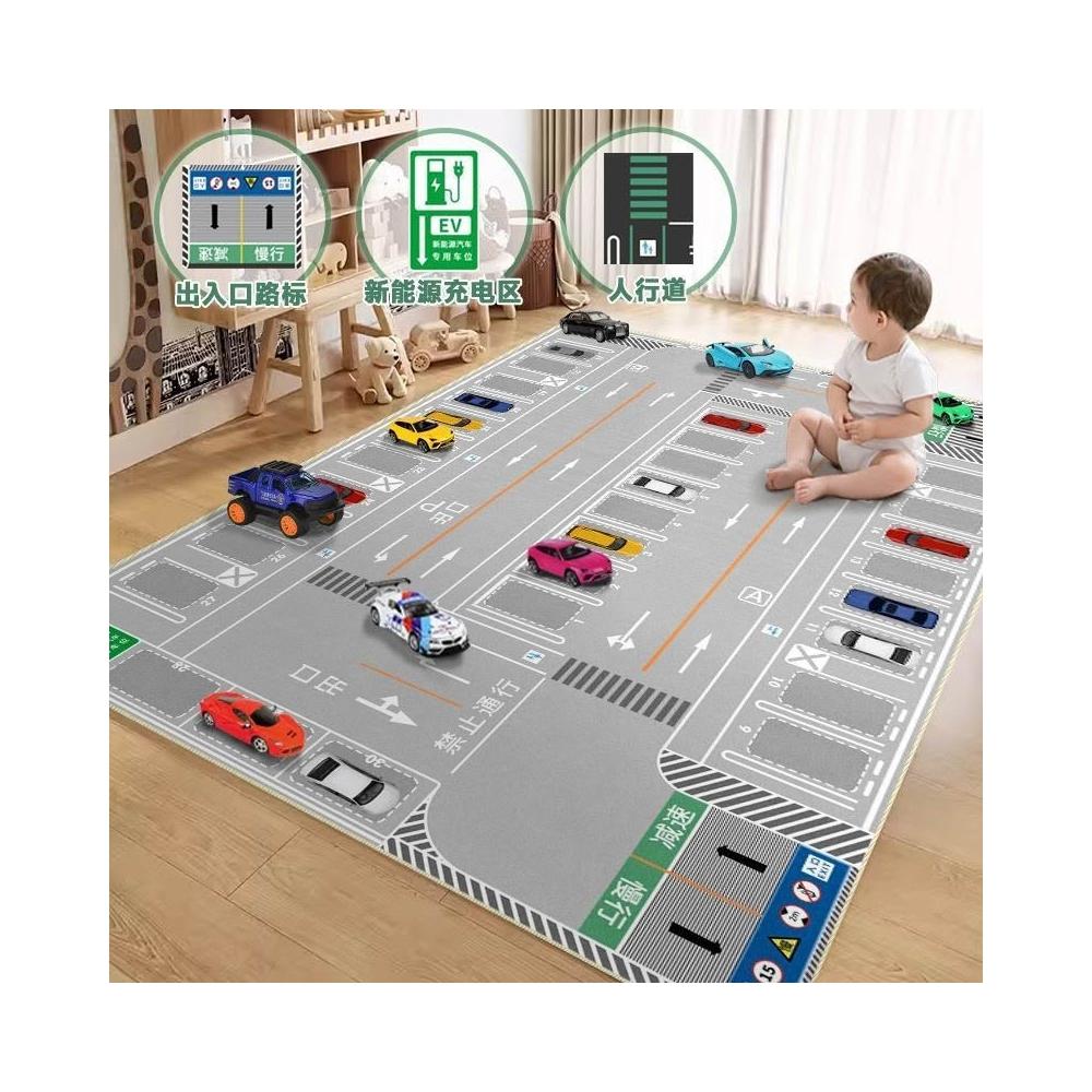 水晶絨停車場地墊幼兒園教師城市交通爬行墊汽車遊戲墊可摺疊8T2Y