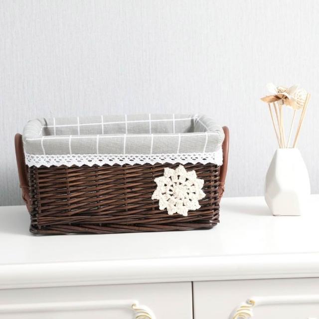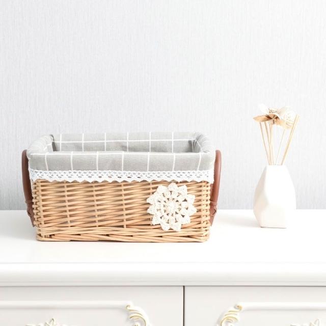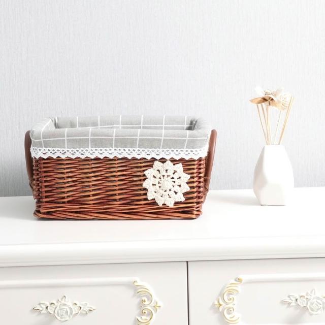 收納籃 日式收納盒 收納框 日式儲物盒 桌上收納框 收納筐柳編藤編籃子收納筐藤編收納盒零食筐藤筐編織儲物藍桌麵