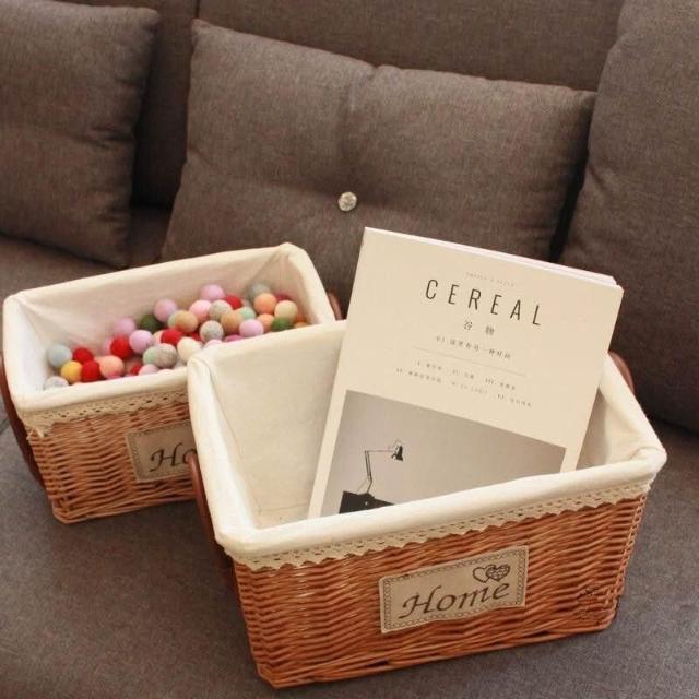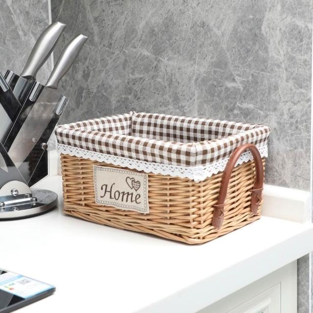 收納籃 日式收納盒 收納框 日式儲物盒 桌上收納框 收納筐柳編藤編籃子收納筐藤編收納盒零食筐藤筐編織儲物藍桌麵