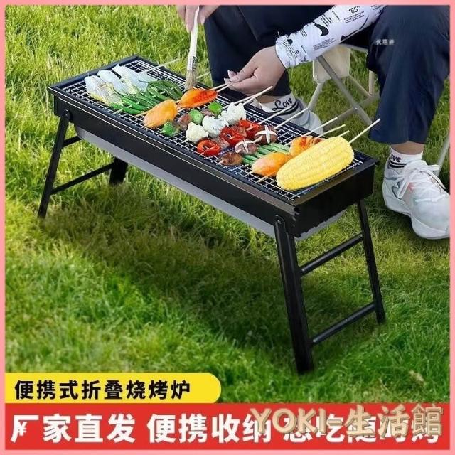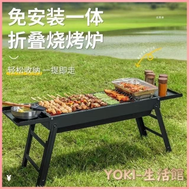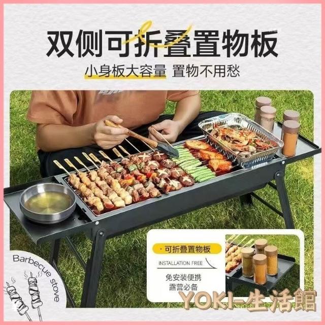 烤肉架 折疊烤肉 折疊烤肉架 不鏽鋼烤肉架 燒烤爐 家庭烤肉 燒烤爐燒烤戶外木炭架子家用烤肉抽拉式炭槽便攜式折疊爐子